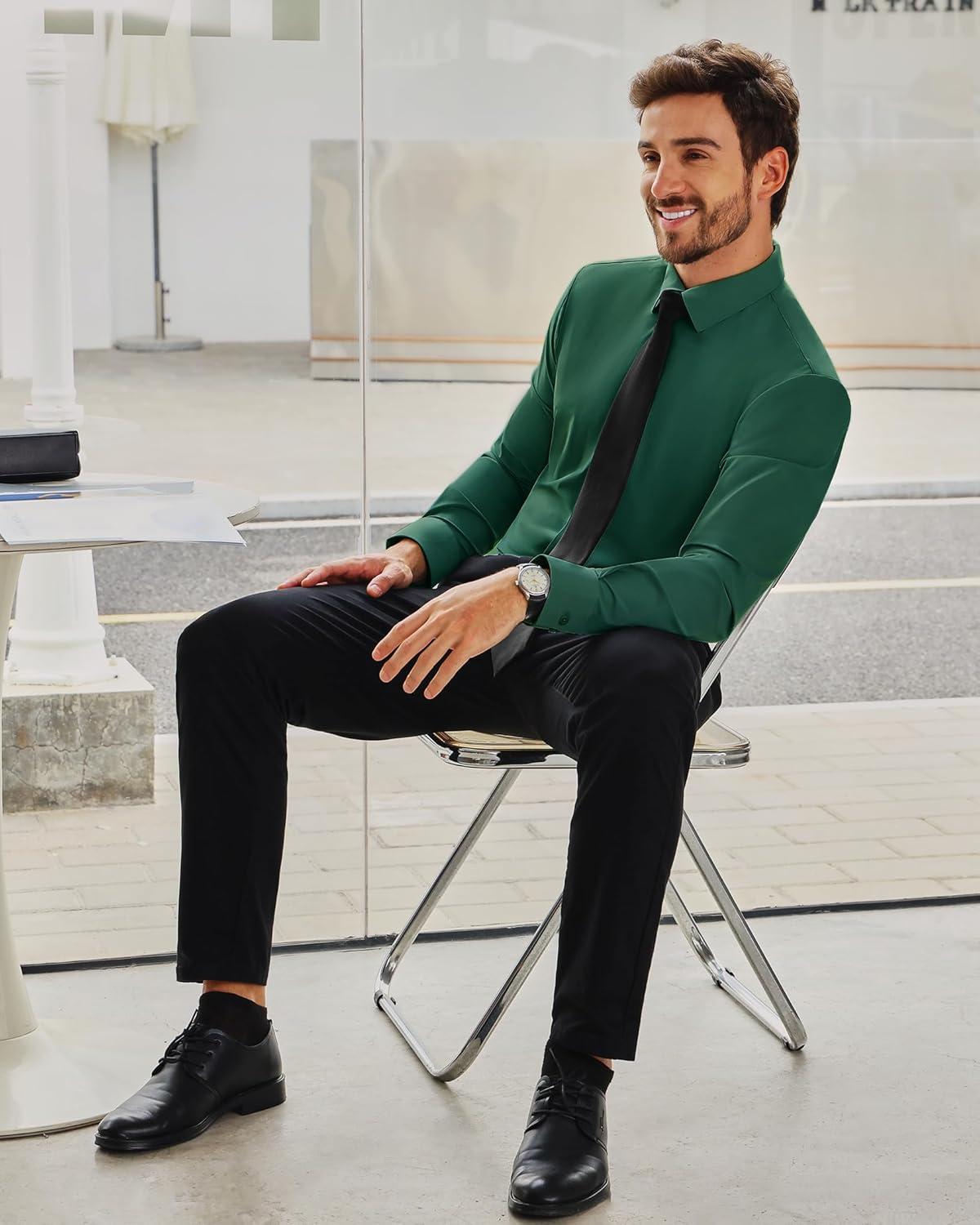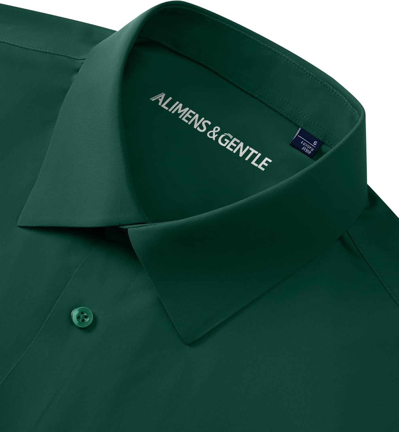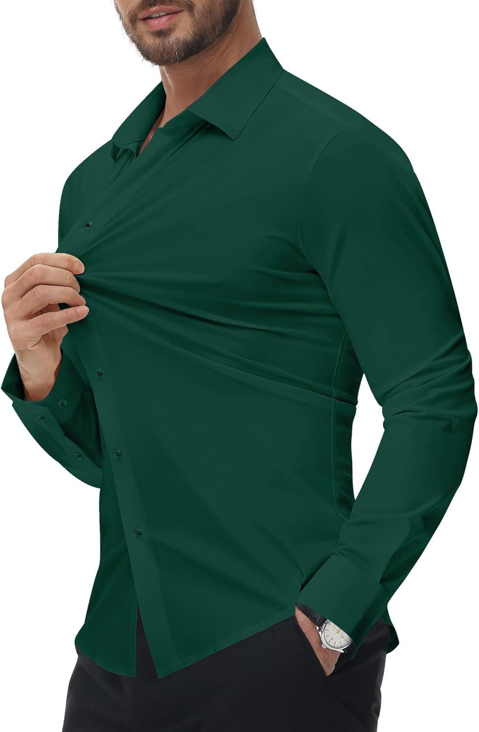 Alimens & Gentle Stretch Mens Dress Shirts Slim Fit Long Sleeve Casual Skinny Muscle Fit Wrinkle Free Button Down Shirt(Green)
