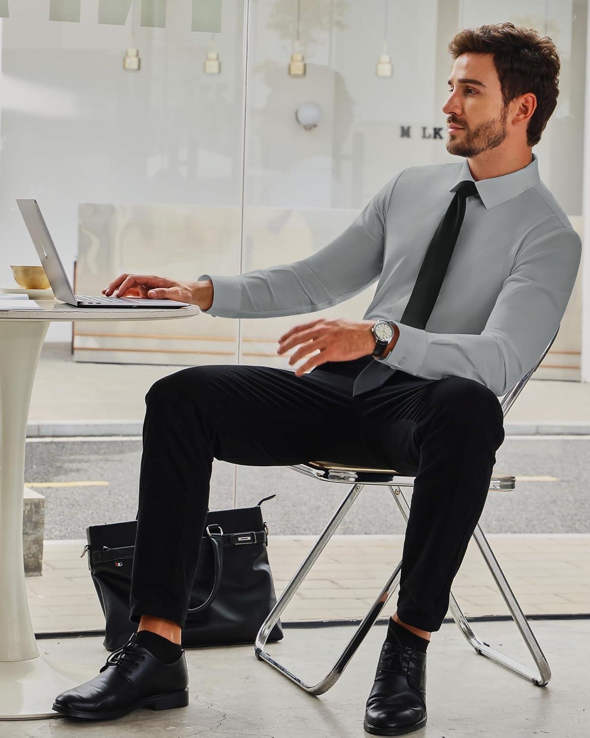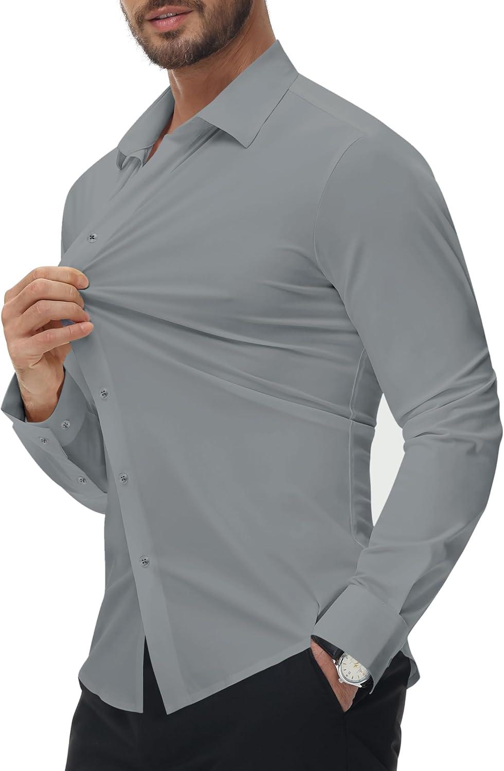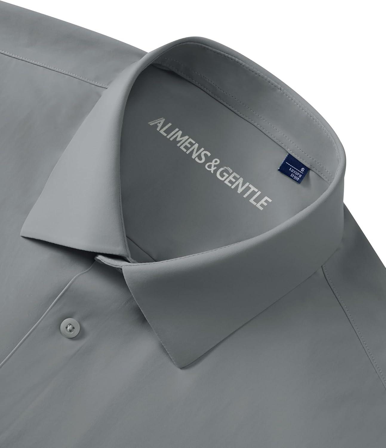 Alimens & Gentle Stretch Mens Dress Shirts Slim Fit Long Sleeve Casual Skinny Muscle Fit Wrinkle Free Button Down Shirt(Grey)