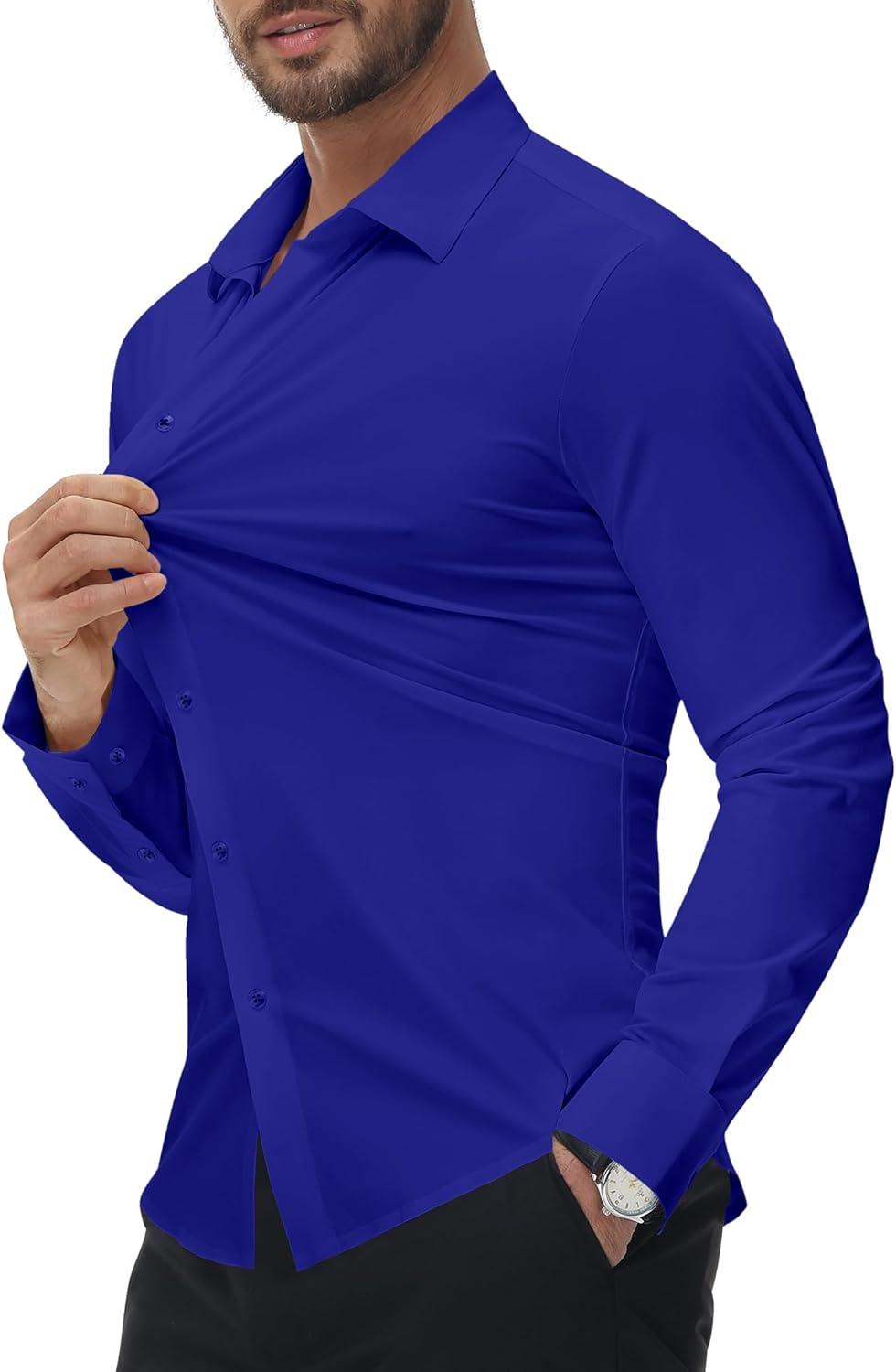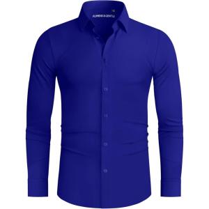 • Alimens & Gentle Stretch Mens Dress Shirts Slim Fit Long Sleeve Casual Skinny Muscle Fit Wrinkle Free Button Down Shirt(Klein Blue)