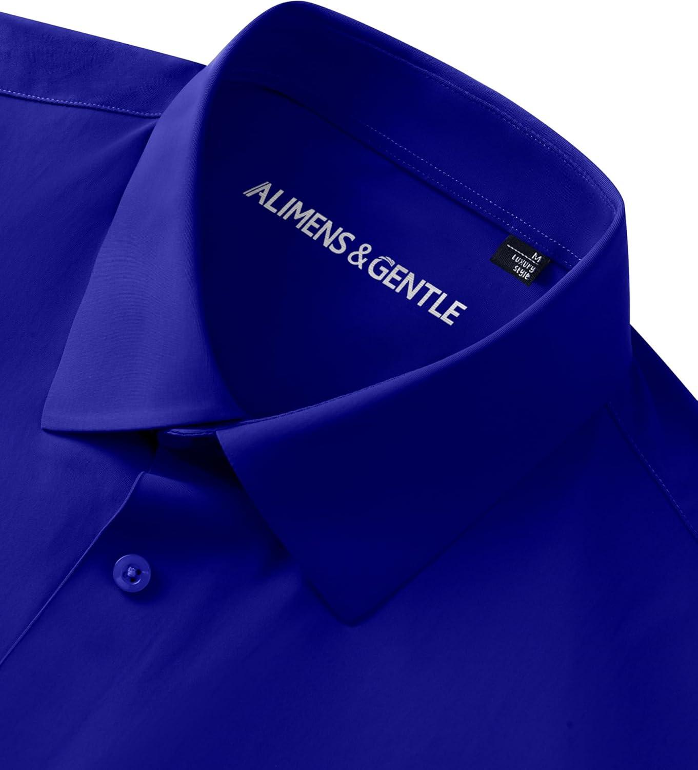 Alimens & Gentle Stretch Mens Dress Shirts Slim Fit Long Sleeve Casual Skinny Muscle Fit Wrinkle Free Button Down Shirt(Klein Blue)