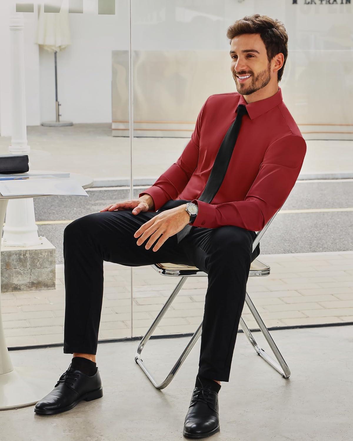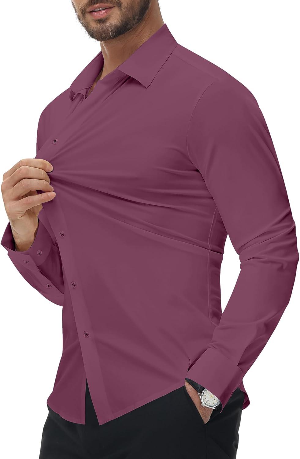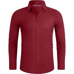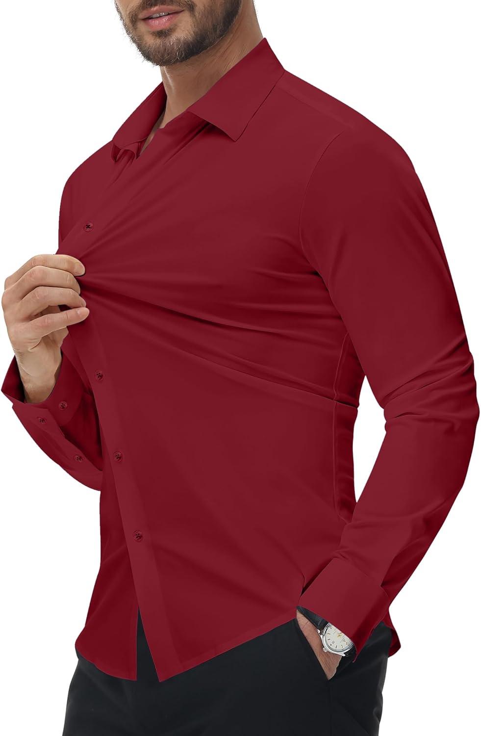• Alimens & Gentle Stretch Mens Dress Shirts Slim Fit Long Sleeve Casual Skinny Muscle Fit Wrinkle Free Button Down Shirt(Ruby Red)