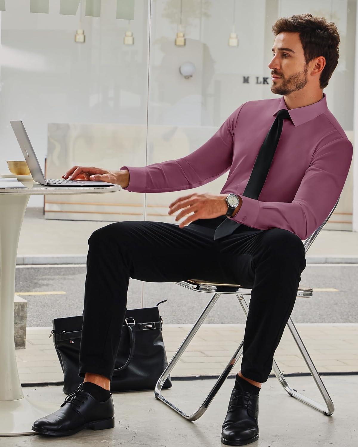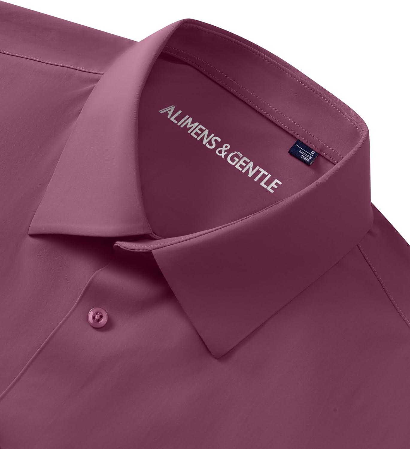 Alimens & Gentle Stretch Mens Dress Shirts Slim Fit Long Sleeve Casual Skinny Muscle Fit Wrinkle Free Button Down Shirt(Mellow Mauve)