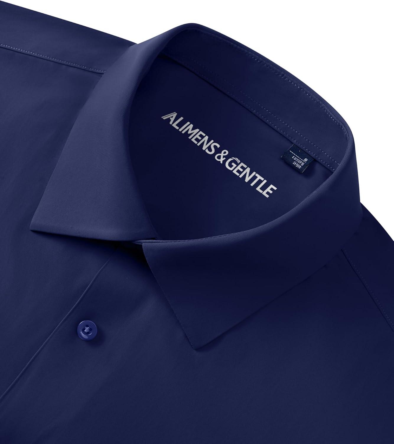 Alimens & Gentle Stretch Mens Dress Shirts Slim Fit Long Sleeve Casual Skinny Muscle Fit Wrinkle Free Button Down Shirt(Navy Blue)