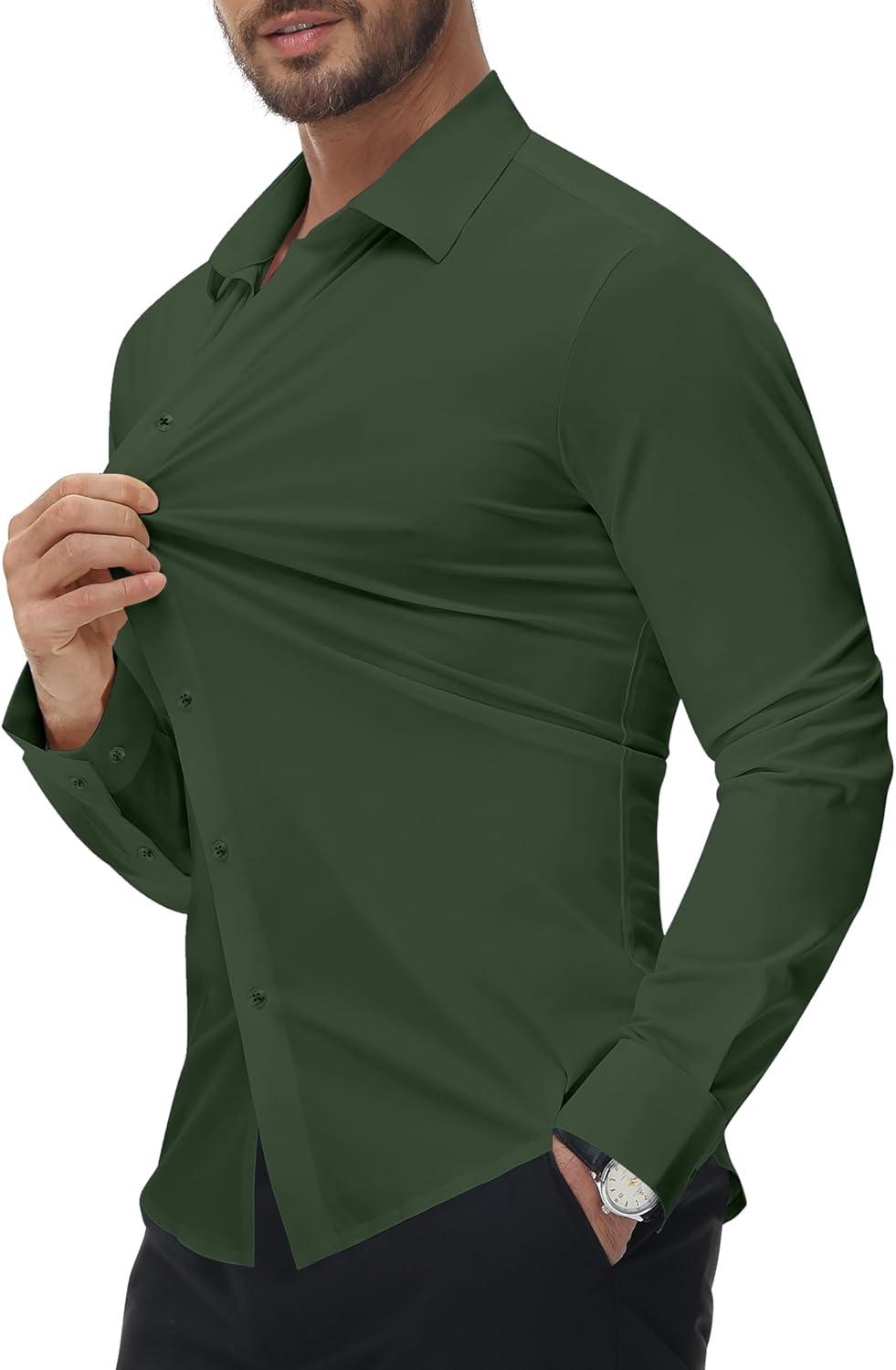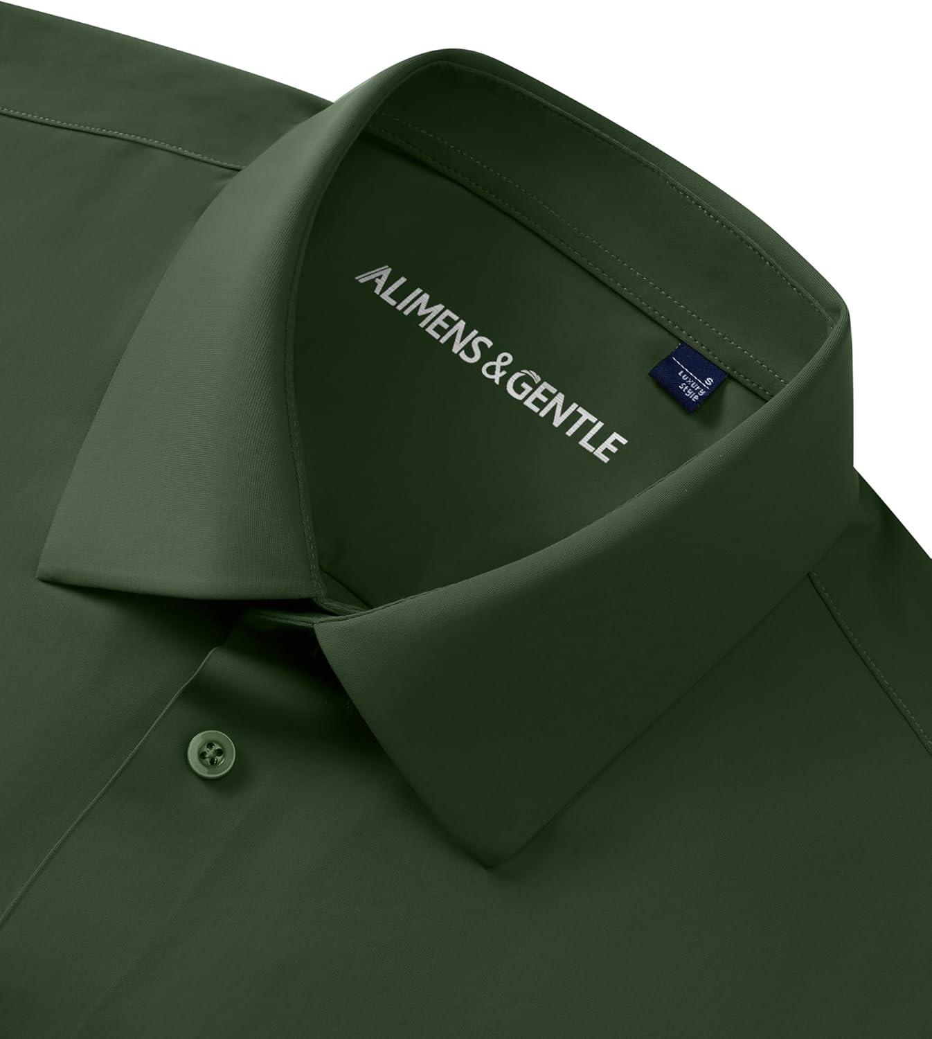 Alimens & Gentle Stretch Mens Dress Shirts Slim Fit Long Sleeve Casual Skinny Muscle Fit Wrinkle Free Button Down Shirt(Olive)