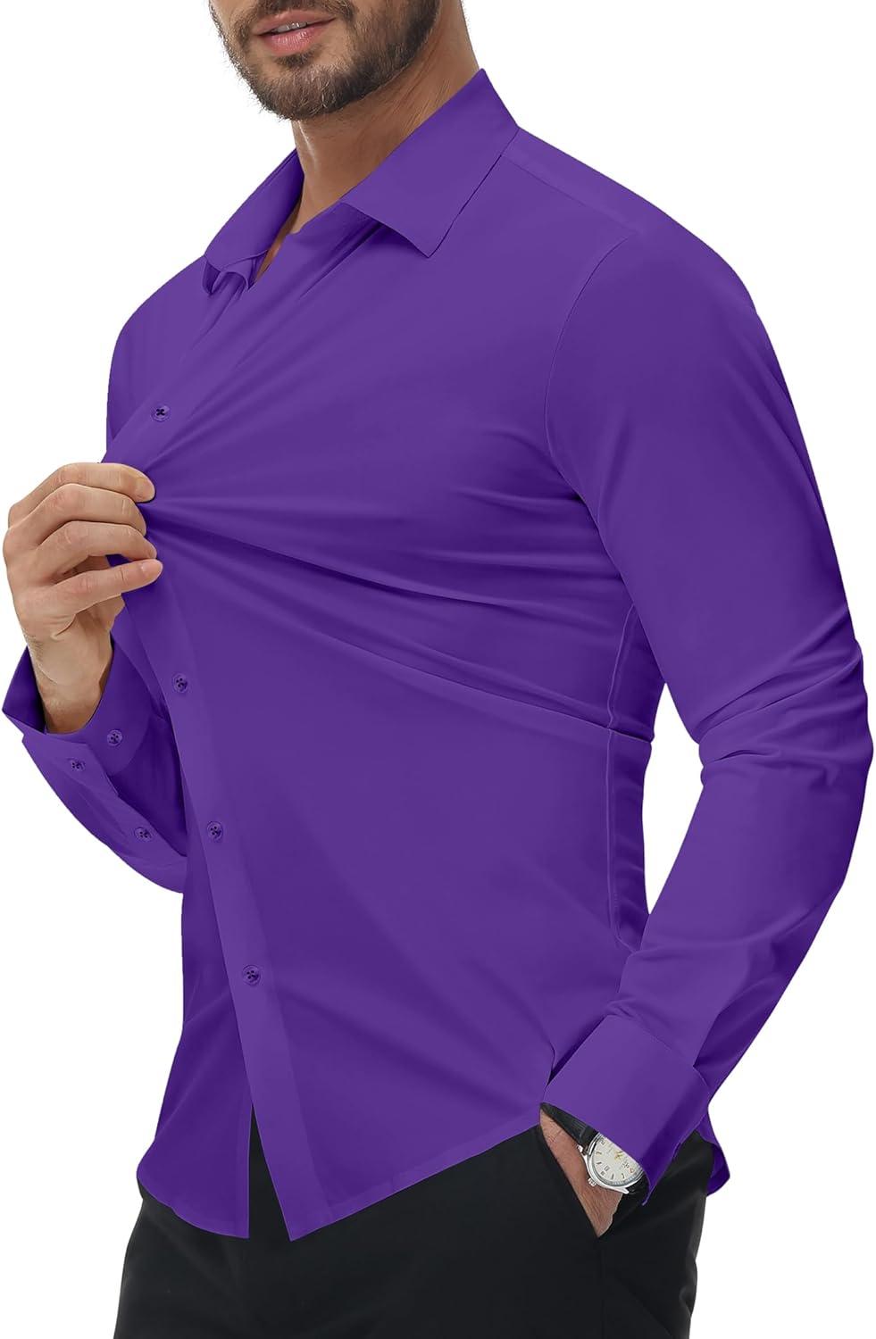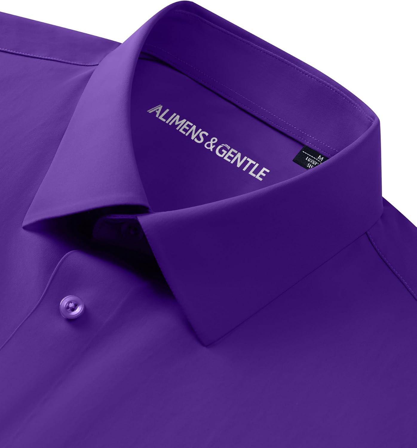 Alimens & Gentle Stretch Mens Dress Shirts Slim Fit Long Sleeve Casual Skinny Muscle Fit Wrinkle Free Button Down Shirt(Purple)