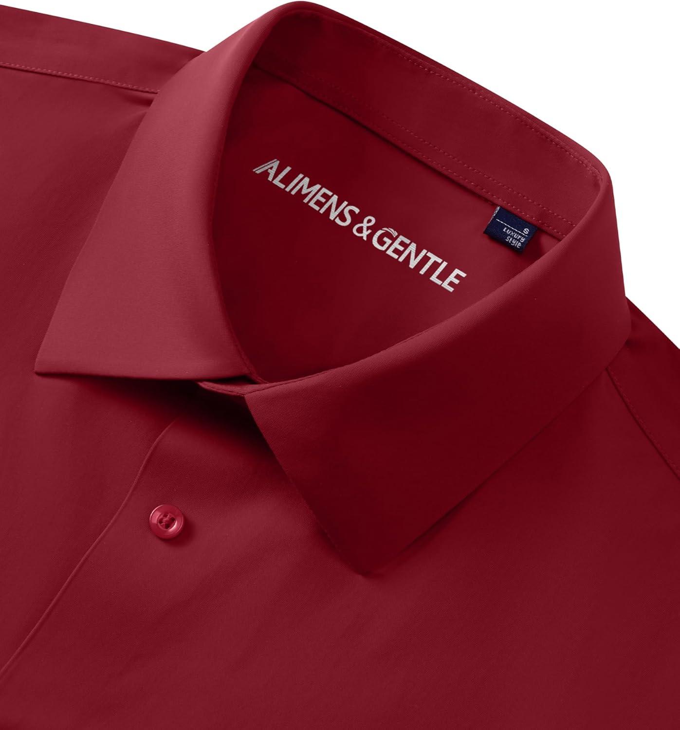 Alimens & Gentle Stretch Mens Dress Shirts Slim Fit Long Sleeve Casual Skinny Muscle Fit Wrinkle Free Button Down Shirt(Ruby Red)