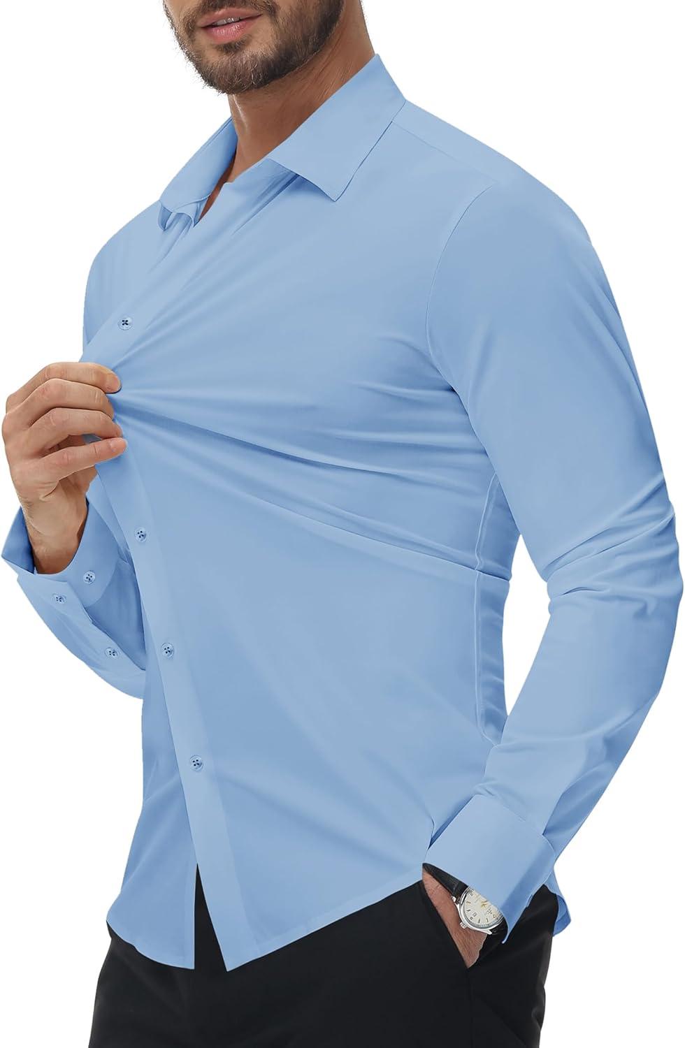 Alimens & Gentle Stretch Mens Dress Shirts Slim Fit Long Sleeve Casual Skinny Muscle Fit Wrinkle Free Button Down Shirt(Sky Blue)