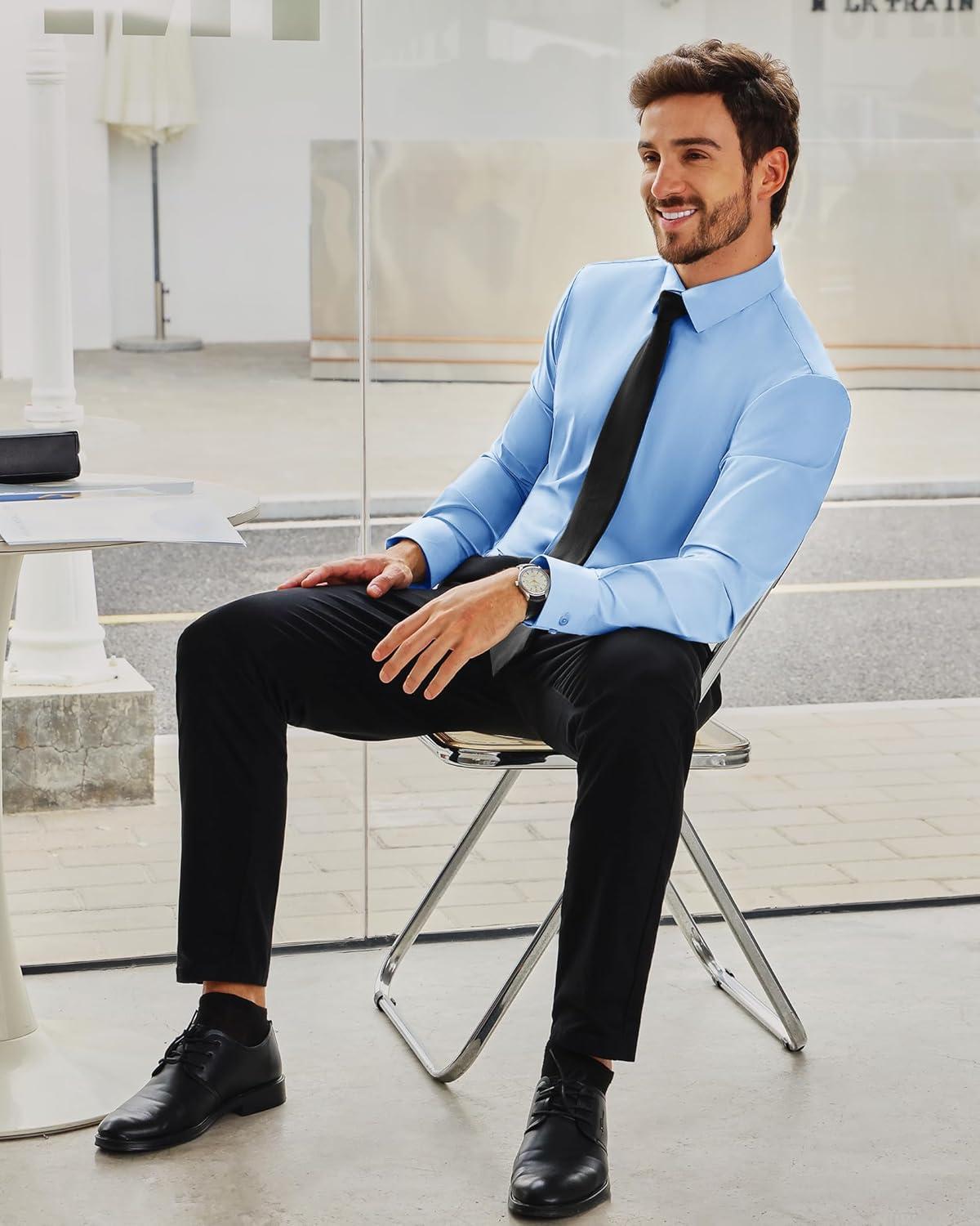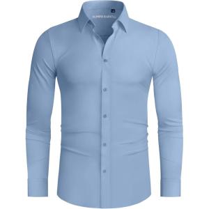 • Alimens & Gentle Stretch Mens Dress Shirts Slim Fit Long Sleeve Casual Skinny Muscle Fit Wrinkle Free Button Down Shirt(Sky Blue)