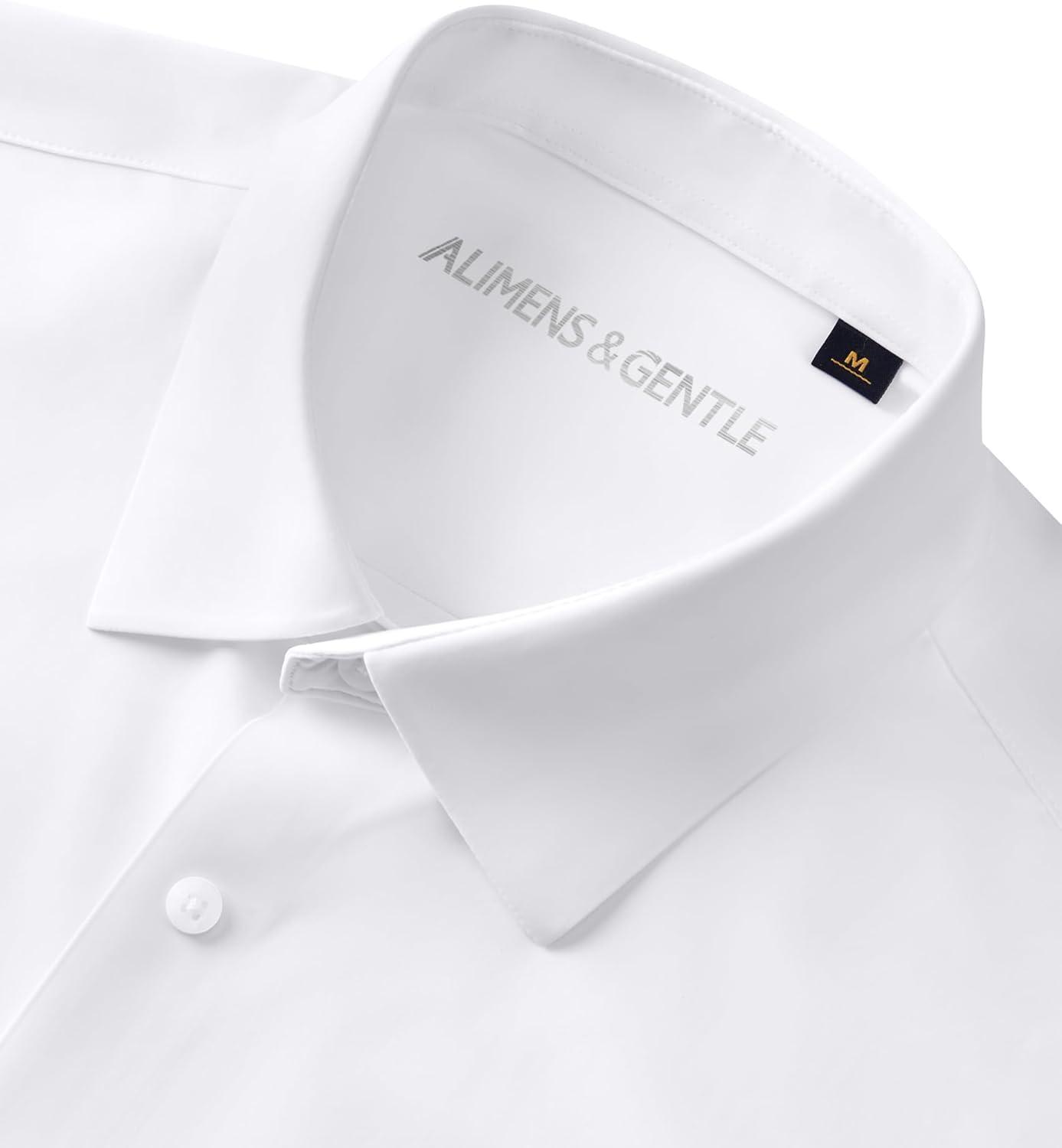 Alimens & Gentle Stretch Mens Dress Shirts Slim Fit Long Sleeve Casual Skinny Muscle Fit Wrinkle Free Button Down Shirt(White)