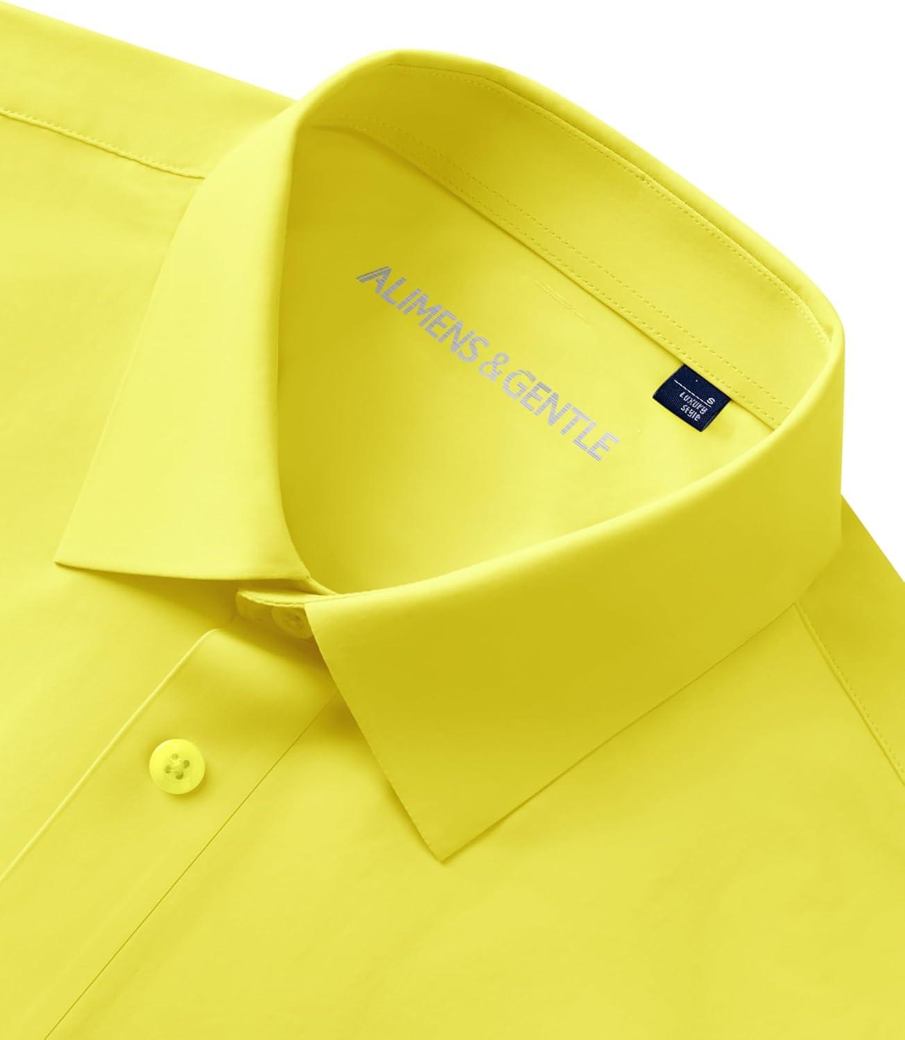 Alimens & Gentle Stretch Mens Dress Shirts Slim Fit Long Sleeve Casual Skinny Muscle Fit Wrinkle Free Button Down Shirt(Yellow)