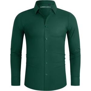 • Alimens & Gentle Stretch Mens Dress Shirts Slim Fit Long Sleeve Casual Skinny Muscle Fit Wrinkle Free Button Down Shirt(Green)