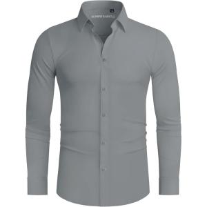 • Alimens & Gentle Stretch Mens Dress Shirts Slim Fit Long Sleeve Casual Skinny Muscle Fit Wrinkle Free Button Down Shirt(Grey)