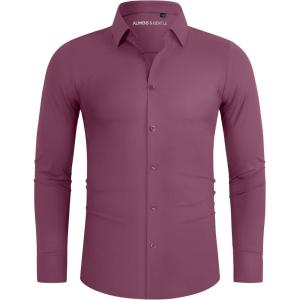 • Alimens & Gentle Stretch Mens Dress Shirts Slim Fit Long Sleeve Casual Skinny Muscle Fit Wrinkle Free Button Down Shirt(Mellow Mauve)