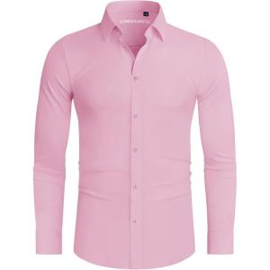 • Alimens & Gentle Stretch Mens Dress Shirts Slim Fit Long Sleeve Casual Skinny Muscle Fit Wrinkle Free Button Down Shirt(Pink)
