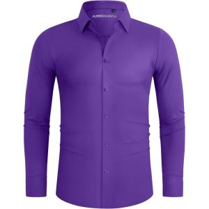 • Alimens & Gentle Stretch Mens Dress Shirts Slim Fit Long Sleeve Casual Skinny Muscle Fit Wrinkle Free Button Down Shirt(Purple)