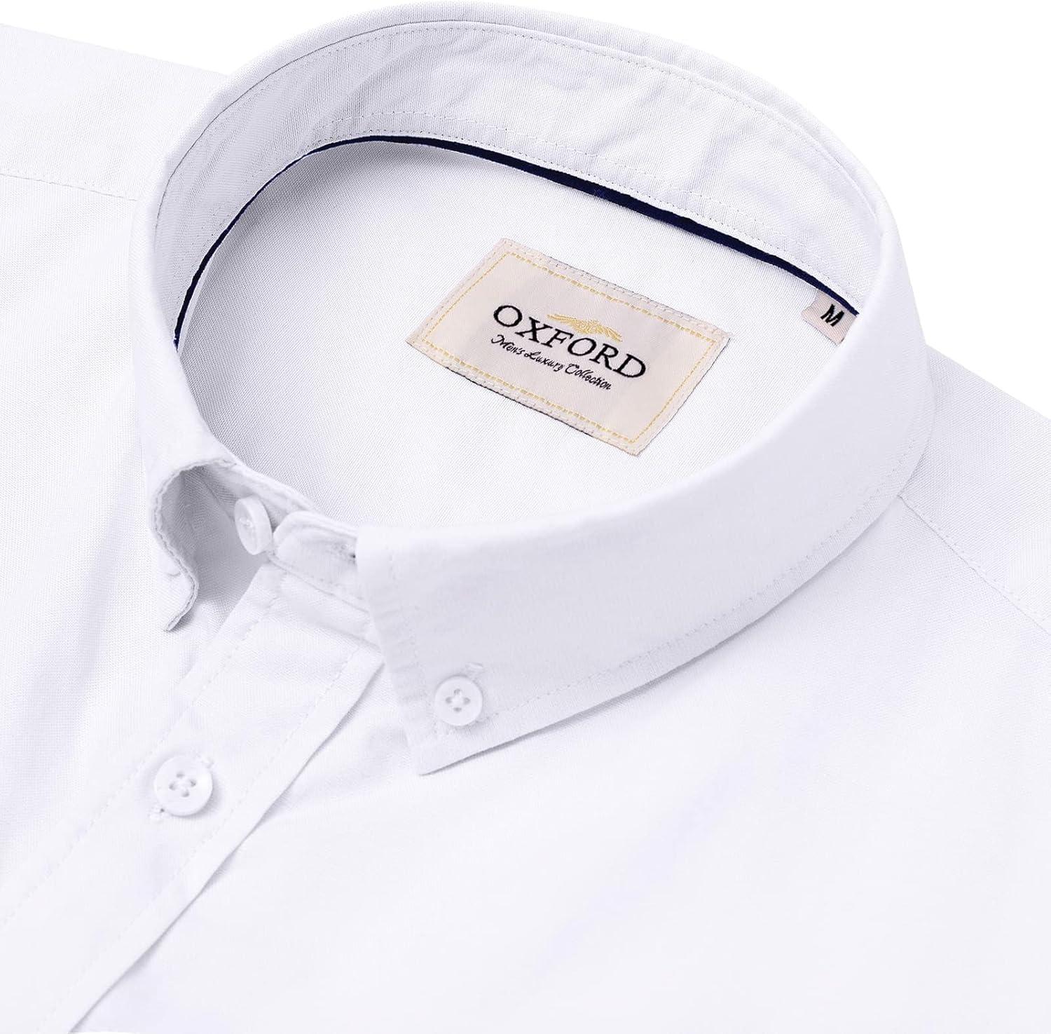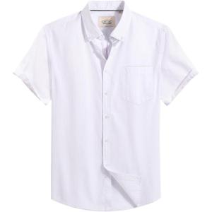 Alimens & Gentle Men’s Short Sleeve Oxford Shirt Regular Fit Button Down Collar Shirts with Pocket(All White)