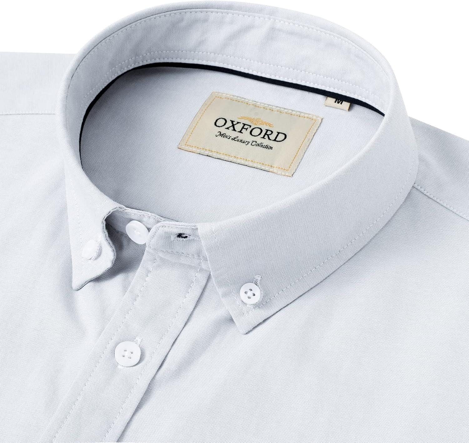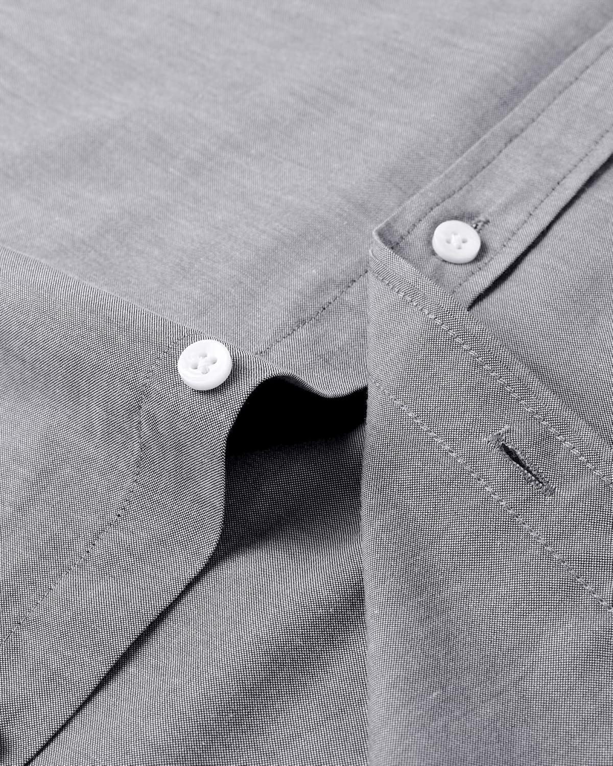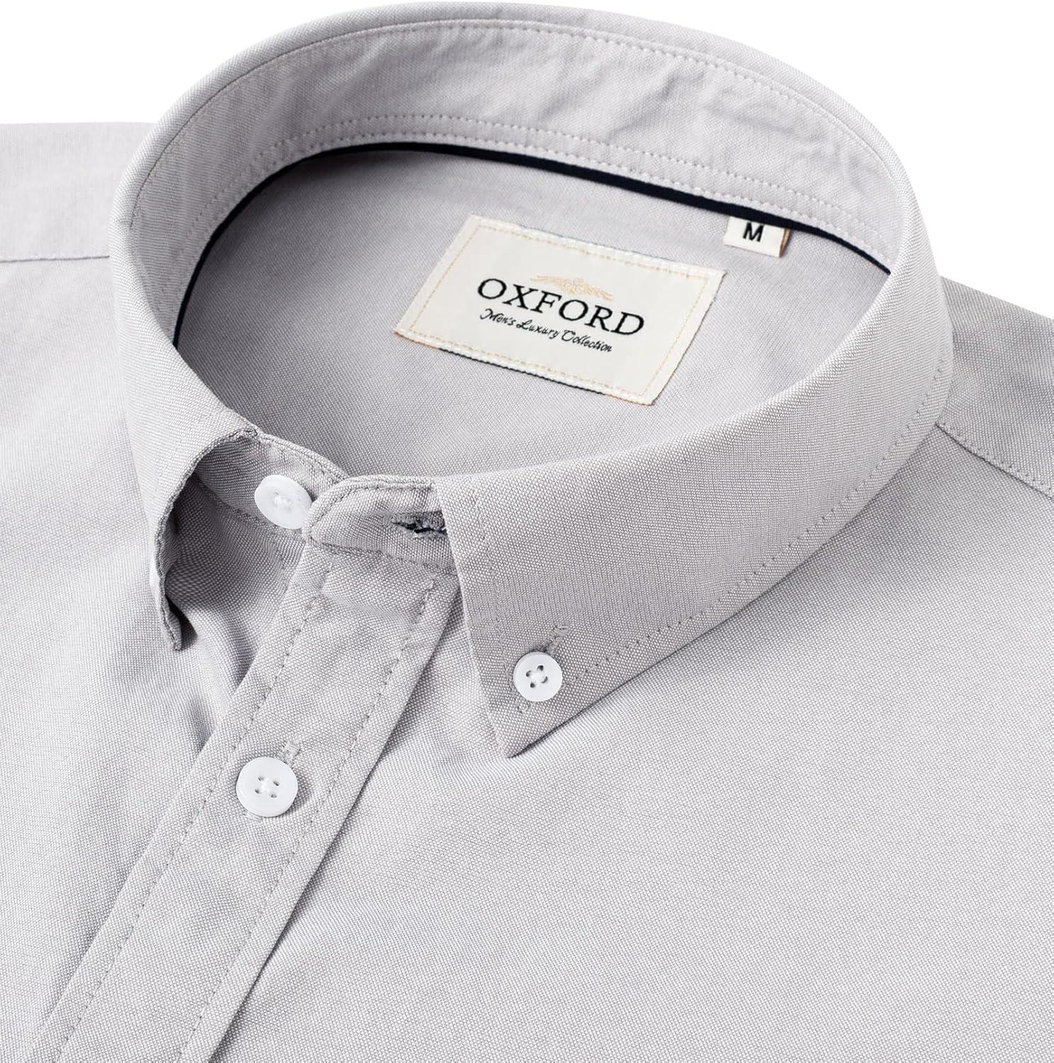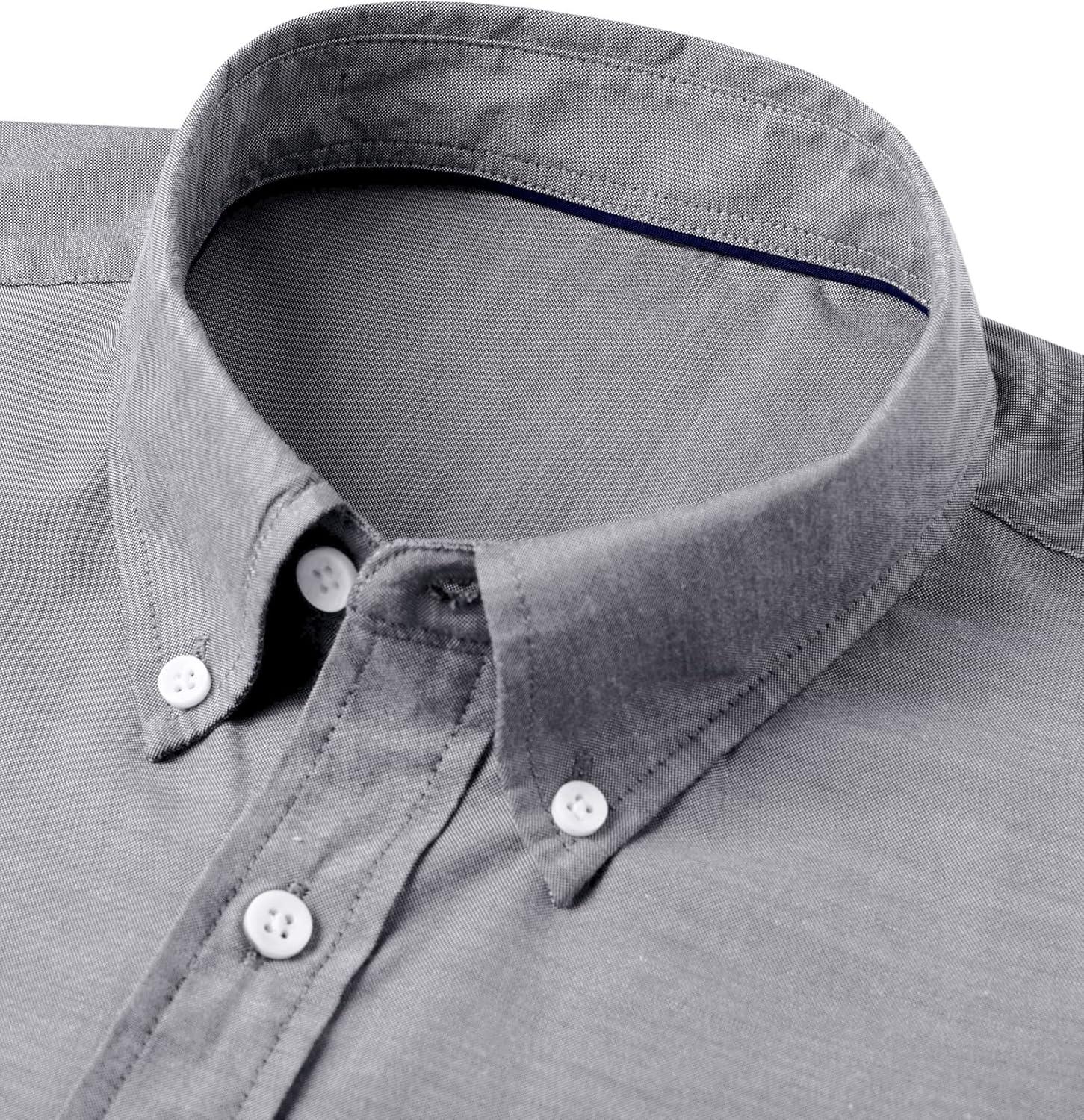 Alimens & Gentle Men’s Short Sleeve Oxford Shirt Regular Fit Button Down Collar Shirts with Pocket(Dark Grey)