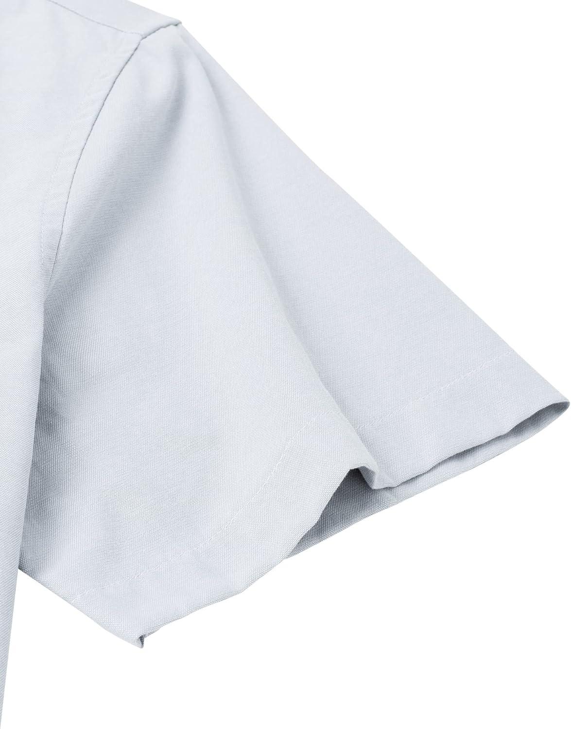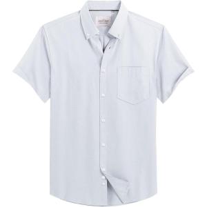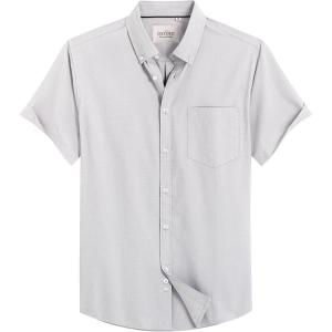 Alimens & Gentle Men’s Short Sleeve Oxford Shirt Regular Fit Button Down Collar Shirts with Pocket(Khaki Grey)