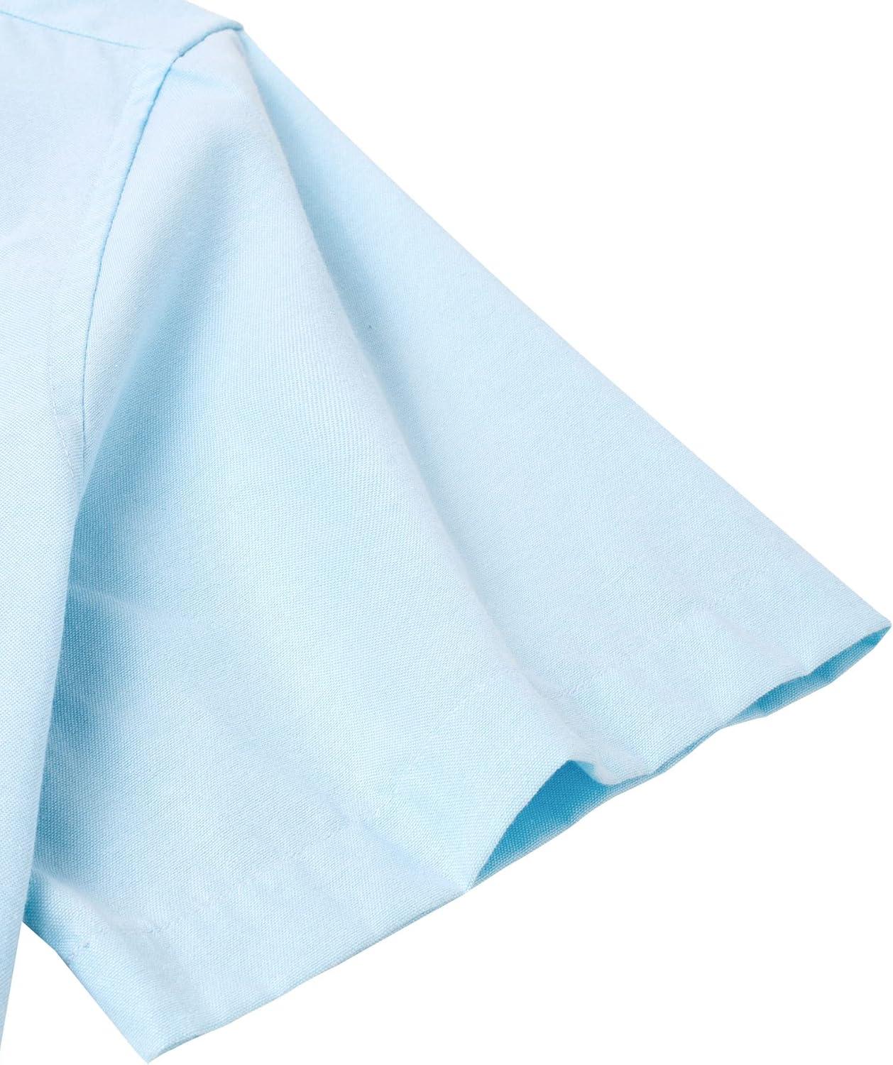 Alimens & Gentle Men’s Short Sleeve Oxford Shirt Regular Fit Button Down Collar Shirts with Pocket(Light Blue)