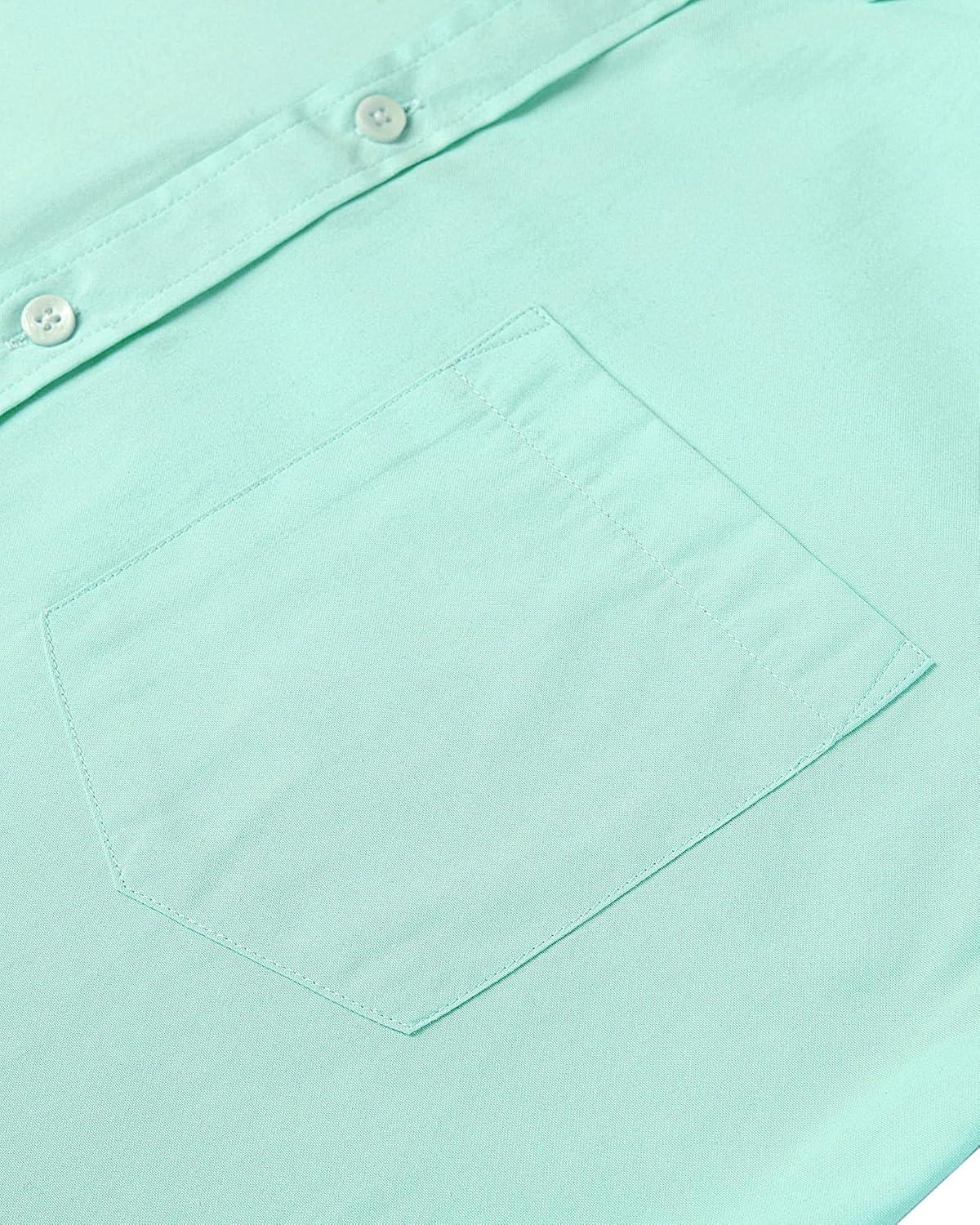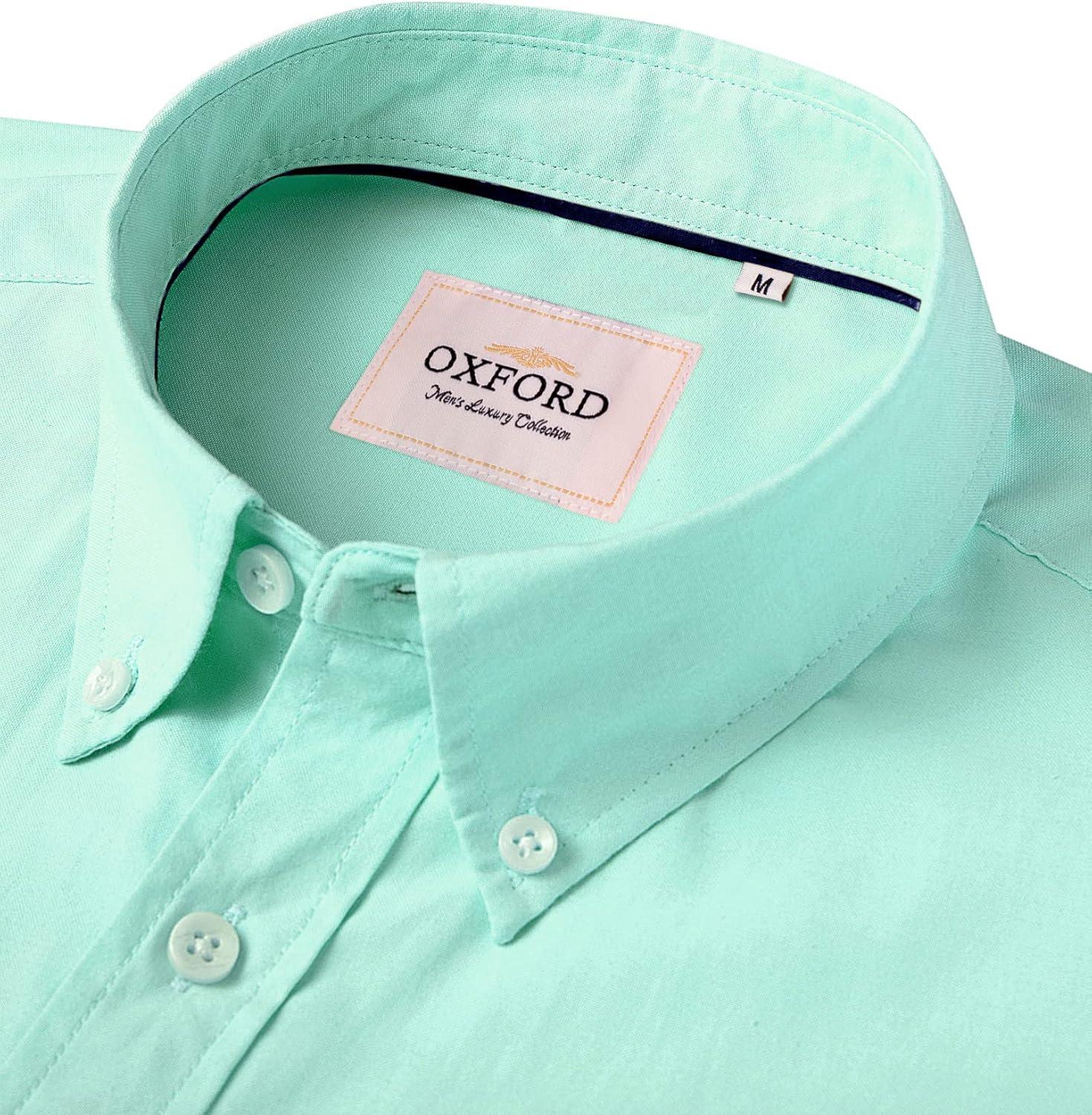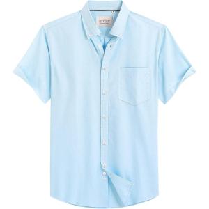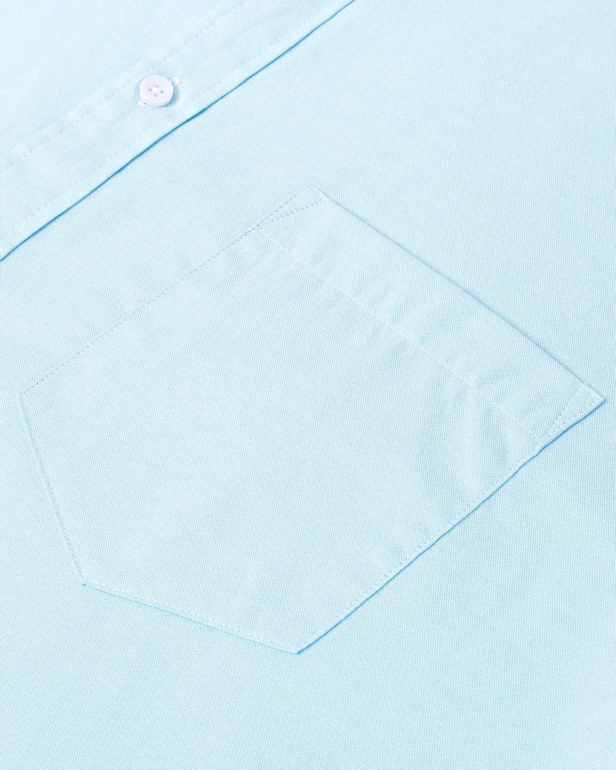 Alimens & Gentle Men’s Short Sleeve Oxford Shirt Regular Fit Button Down Collar Shirts with Pocket(Aquamarine)