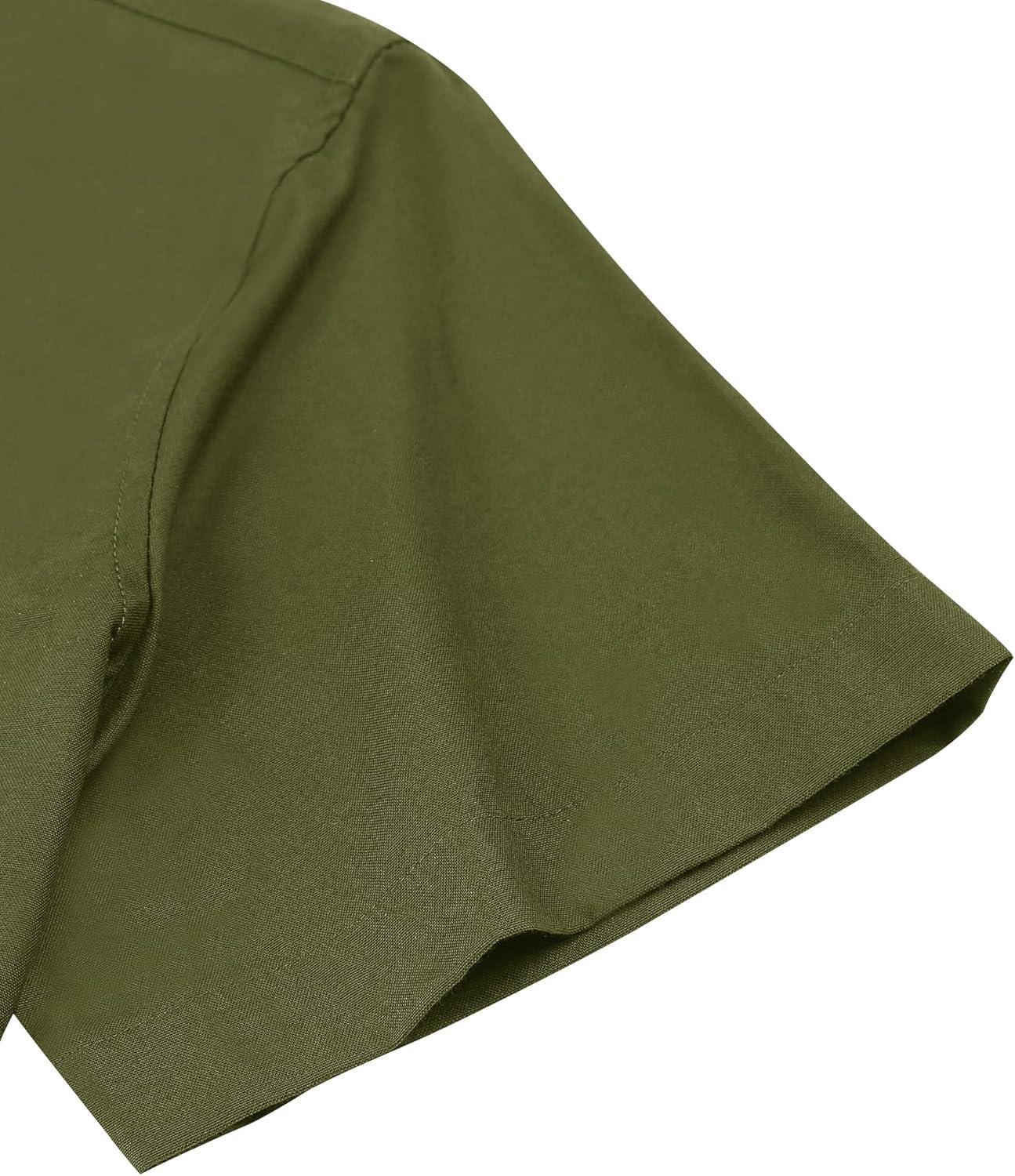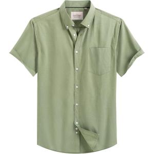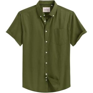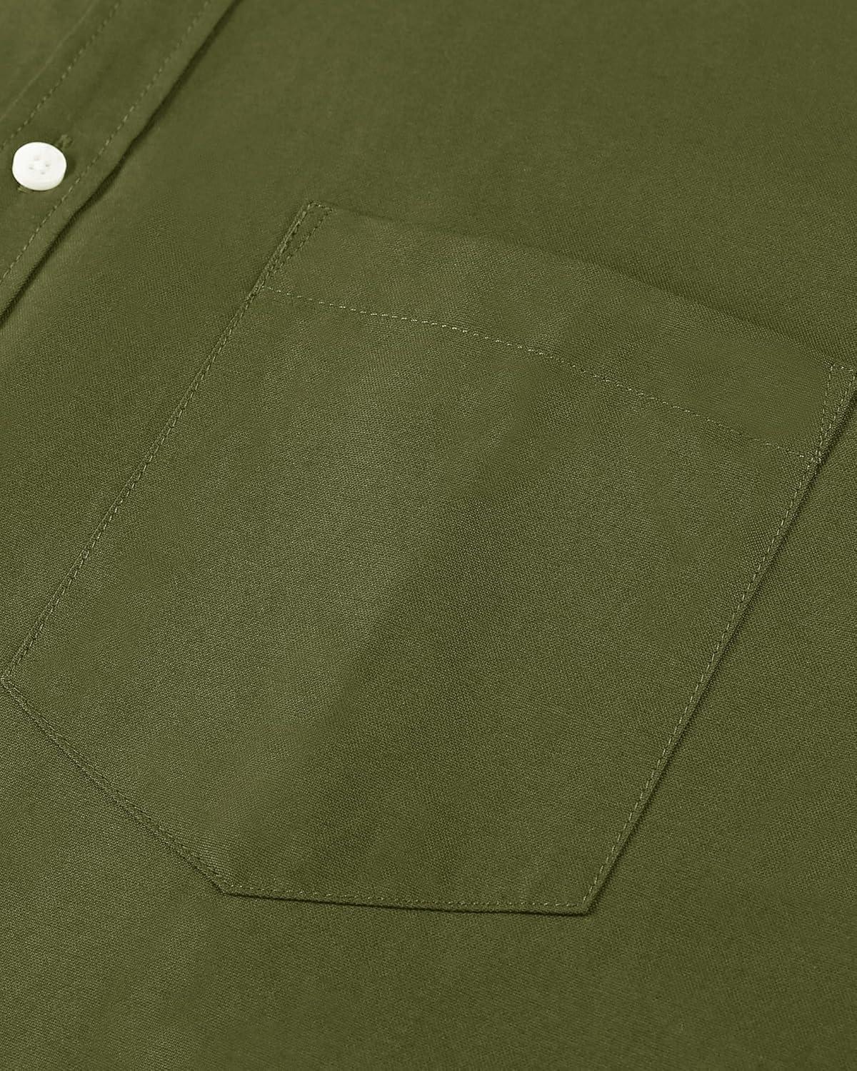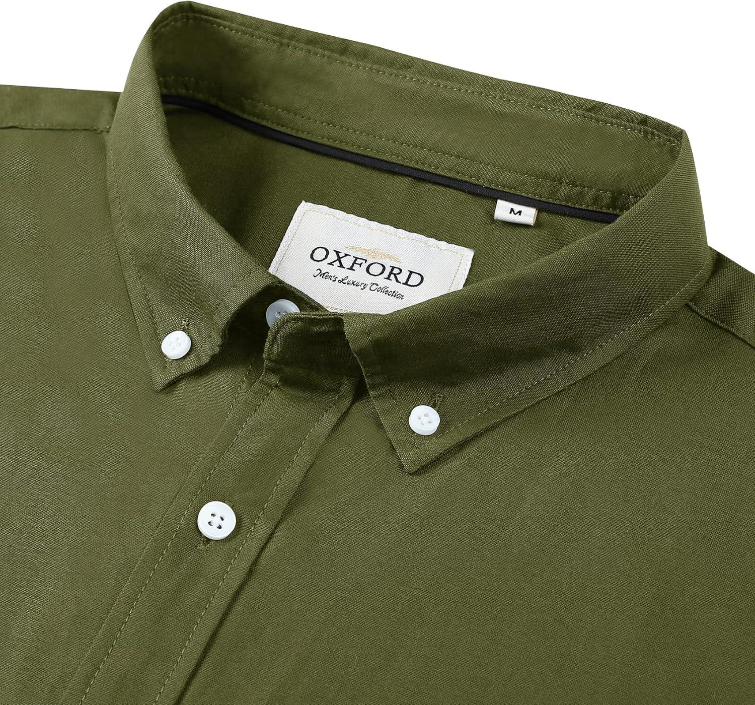 Alimens & Gentle Men’s Short Sleeve Oxford Shirt Regular Fit Button Down Collar Shirts with Pocket(Army Green)