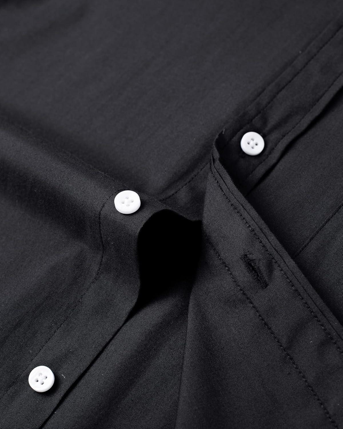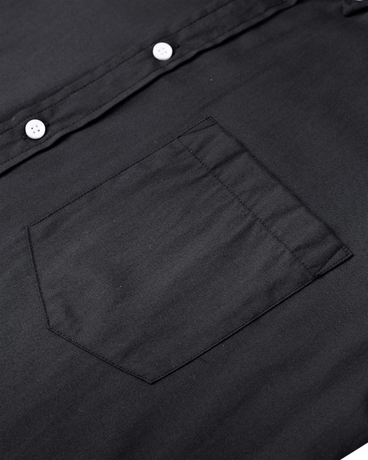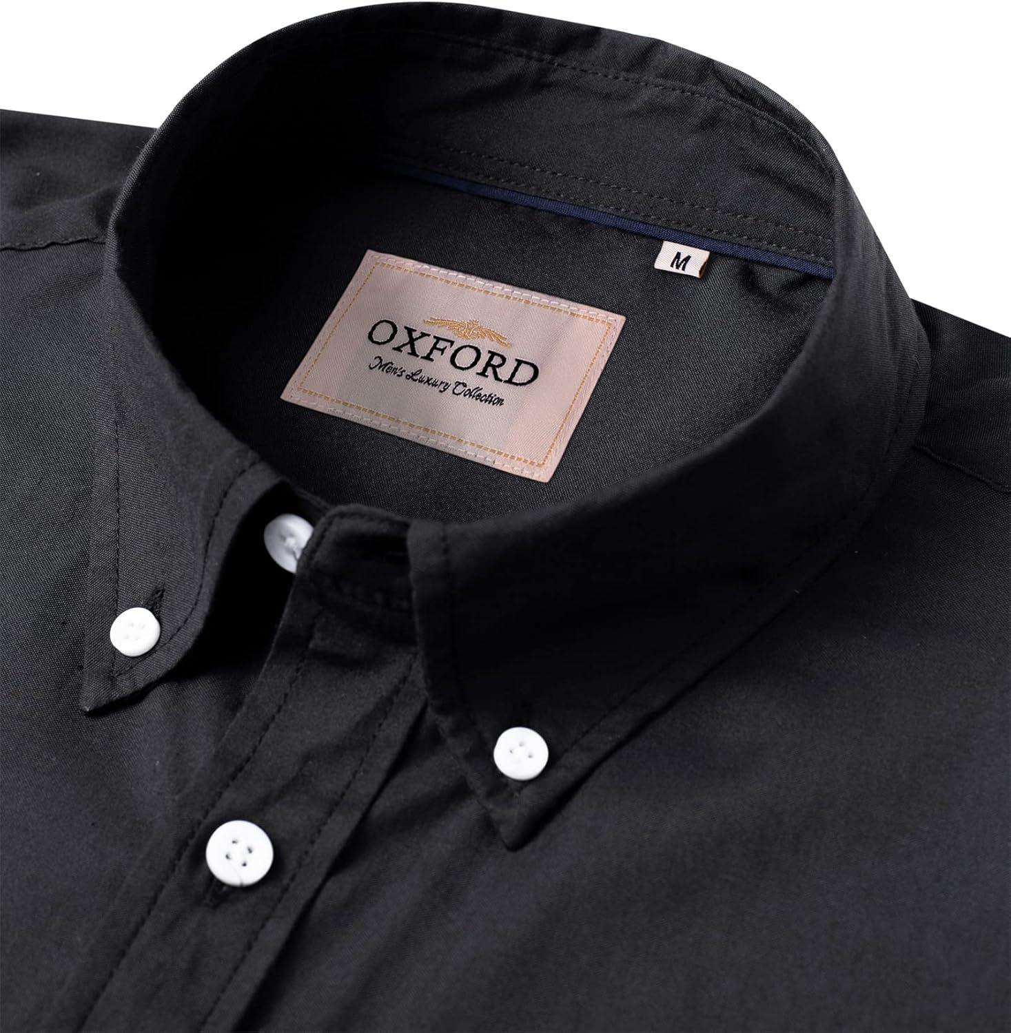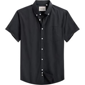 Alimens & Gentle Men’s Short Sleeve Oxford Shirt Regular Fit Button Down Collar Shirts with Pocket(Black)