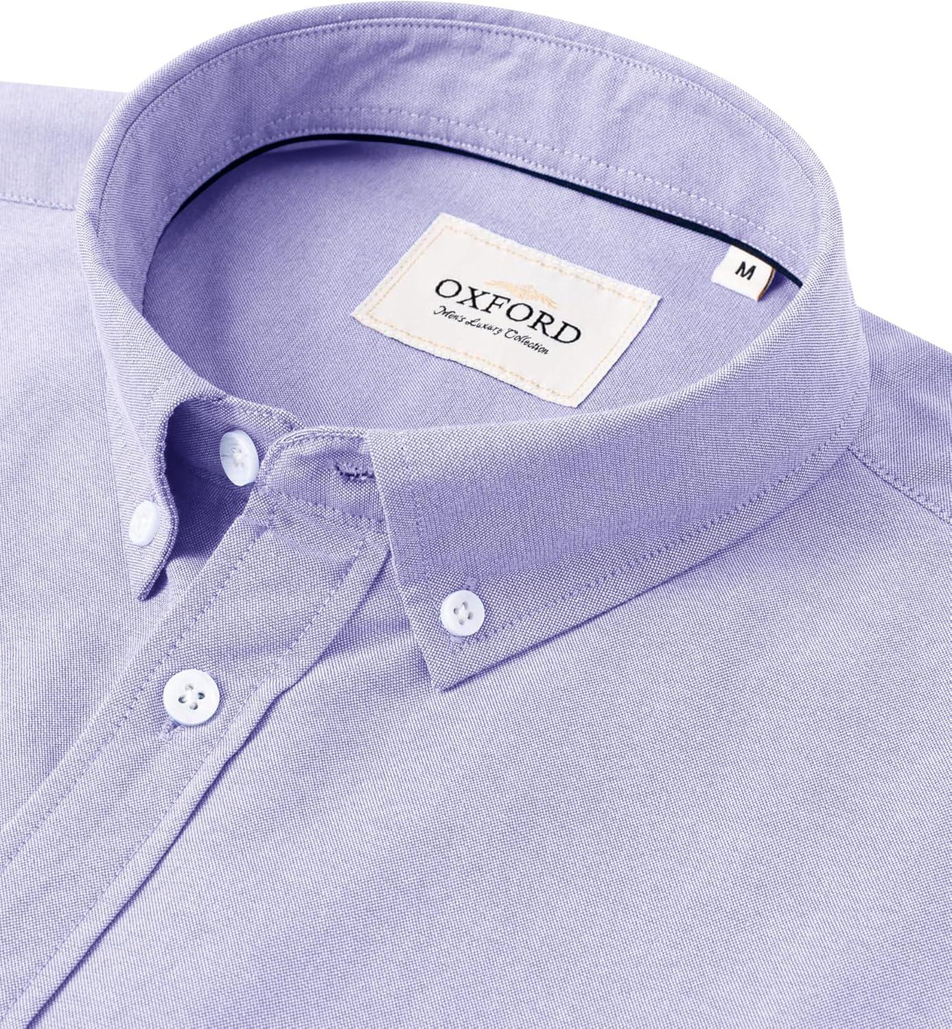 Alimens & Gentle Men’s Short Sleeve Oxford Shirt Regular Fit Button Down Collar Shirts with Pocket(Blue Purple)