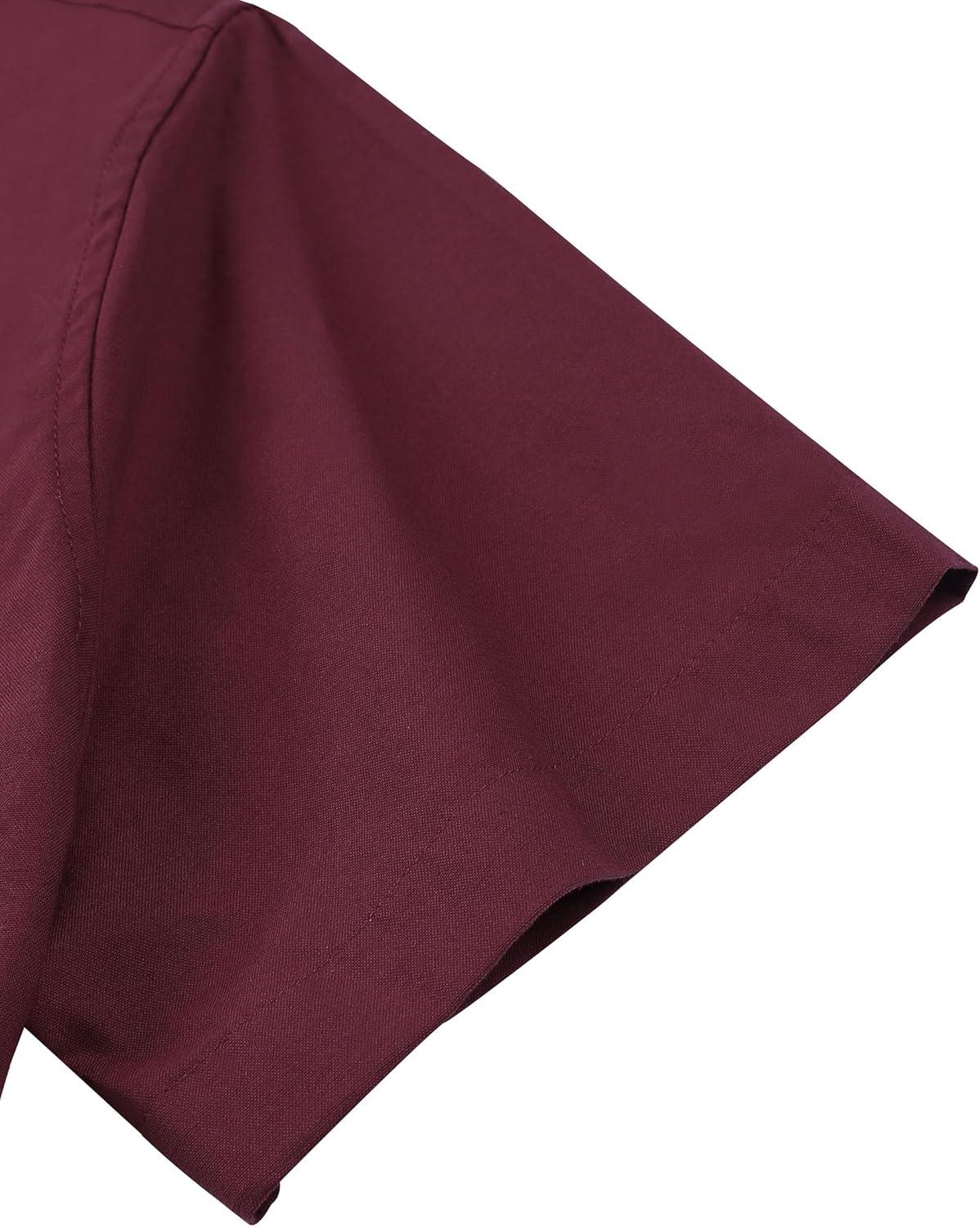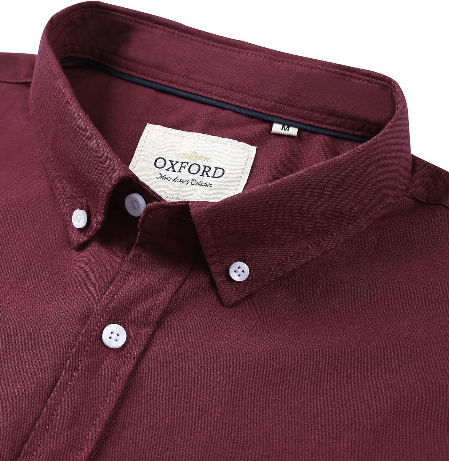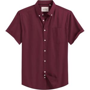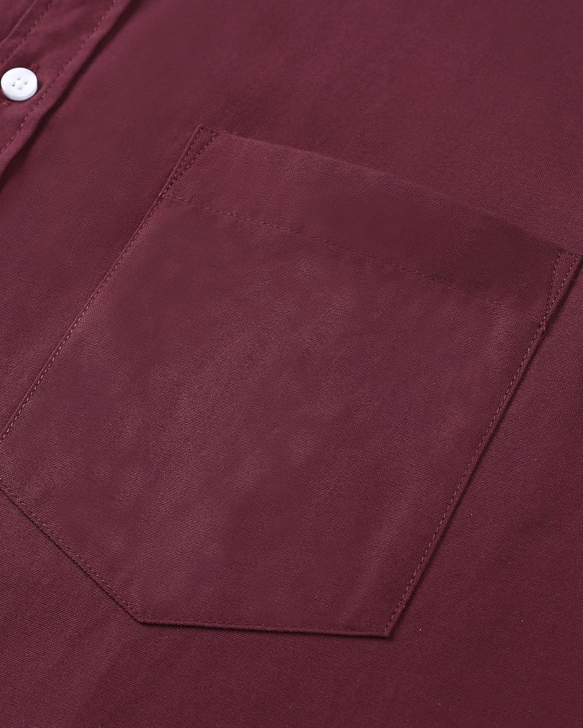 Alimens & Gentle Men’s Short Sleeve Oxford Shirt Regular Fit Button Down Collar Shirts with Pocket(Burgundy)