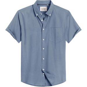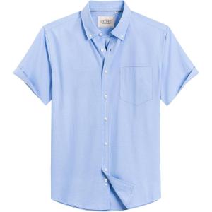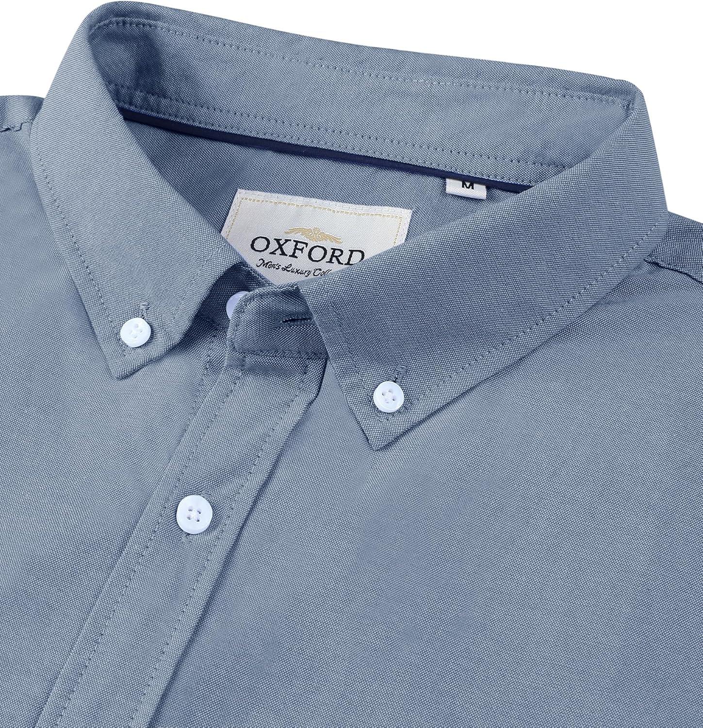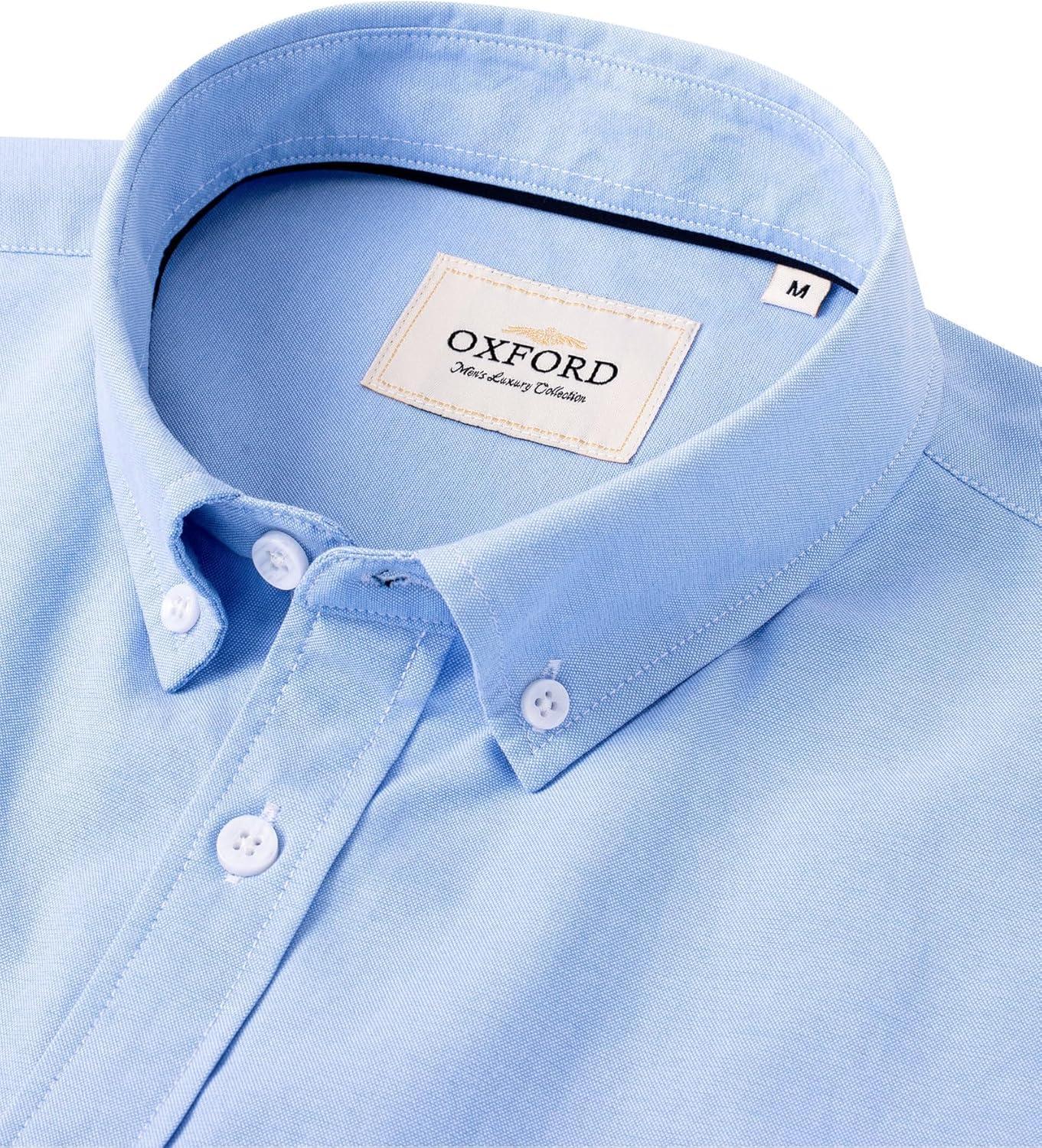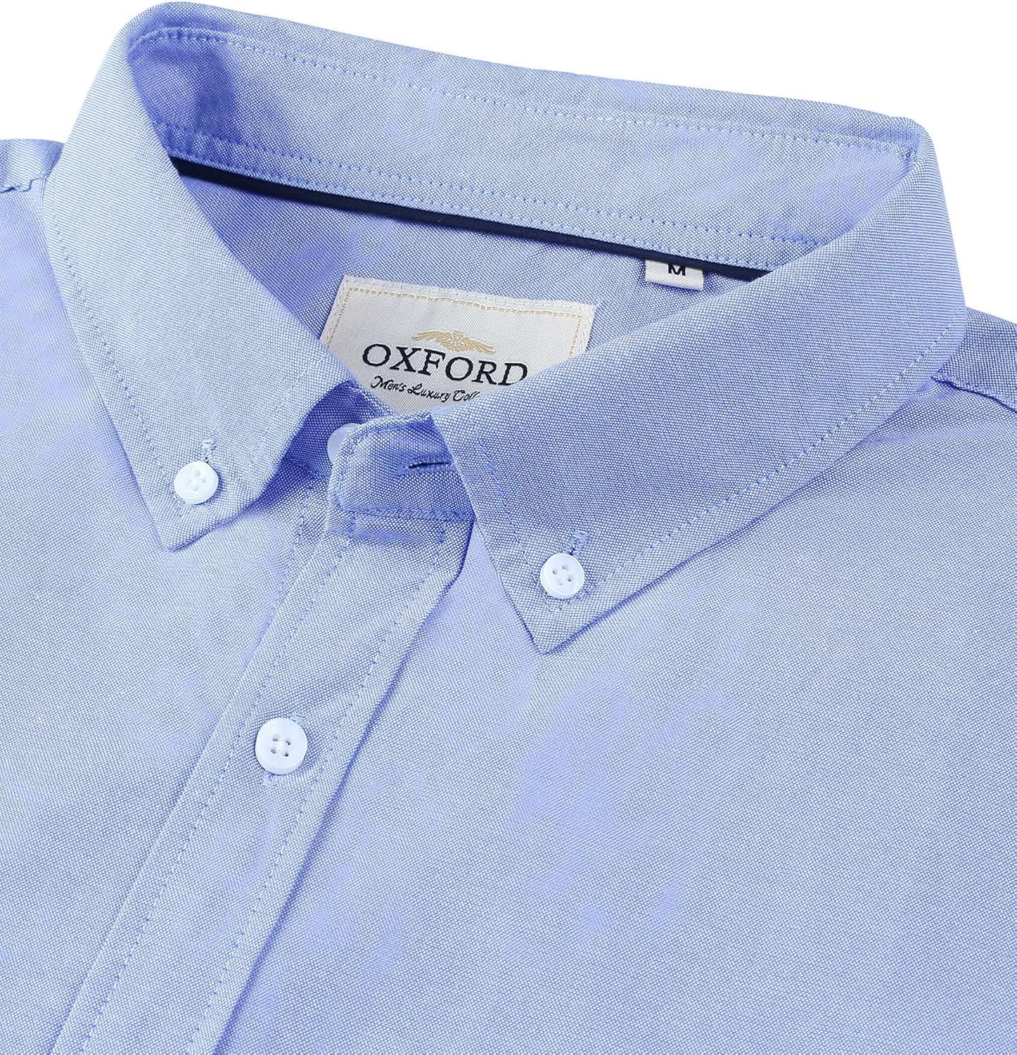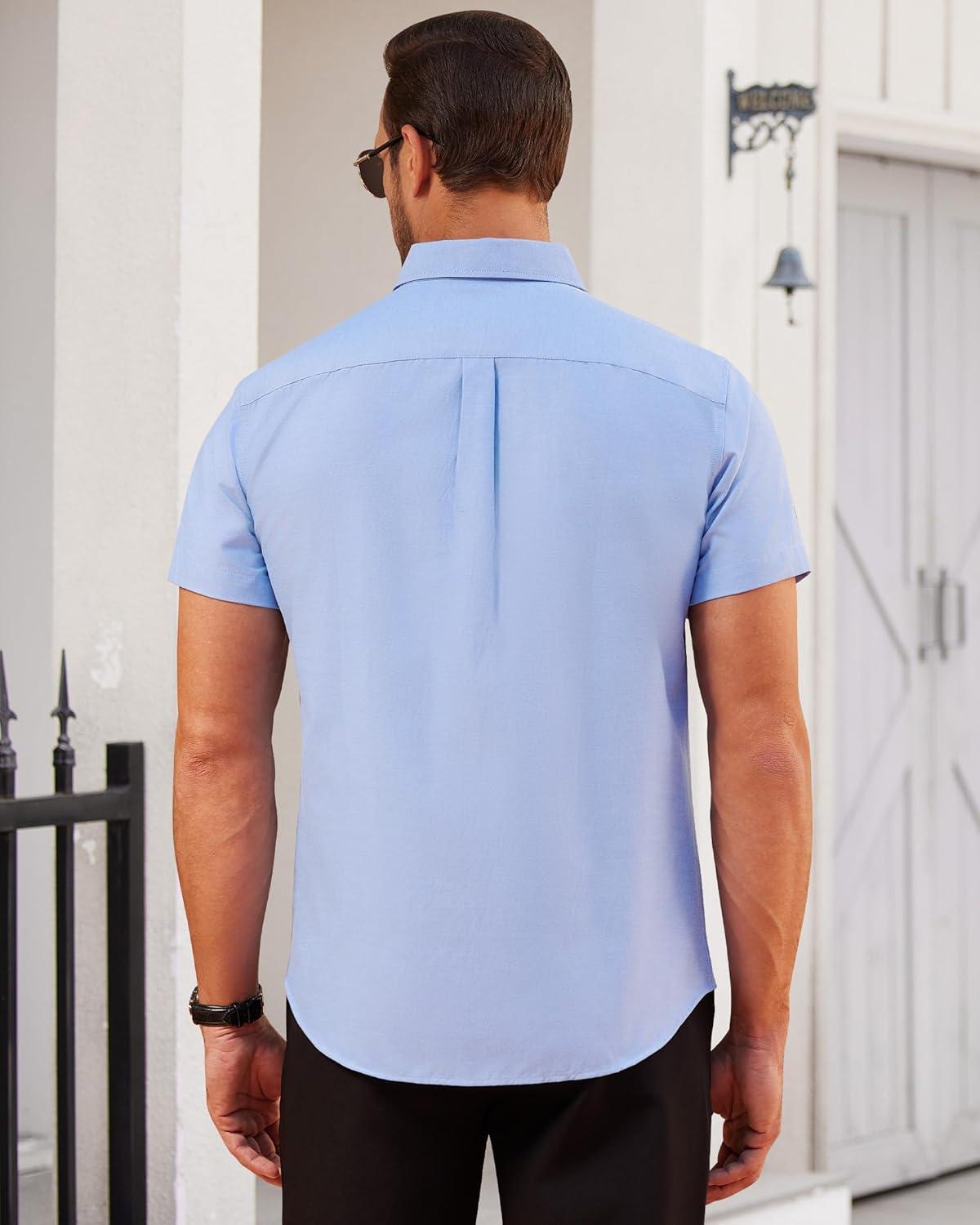 Alimens & Gentle Men’s Short Sleeve Oxford Shirt Regular Fit Button Down Collar Shirts with Pocket(Classic Blue)