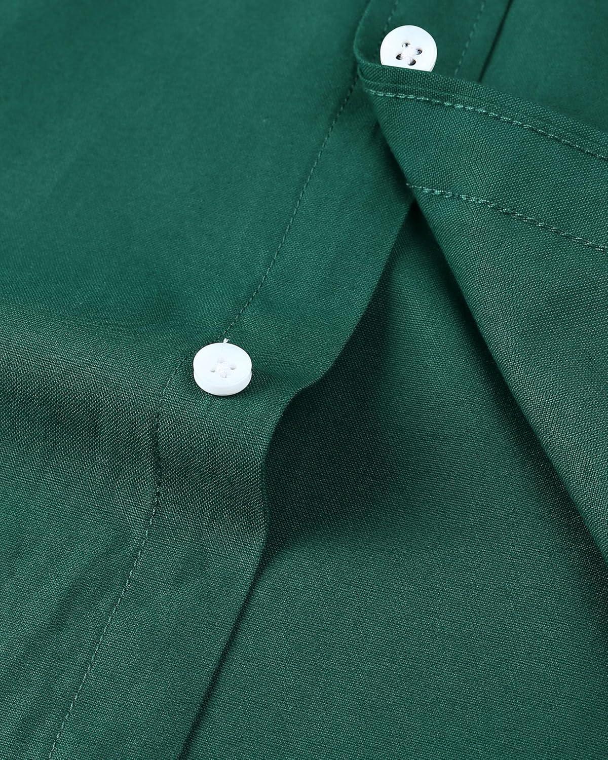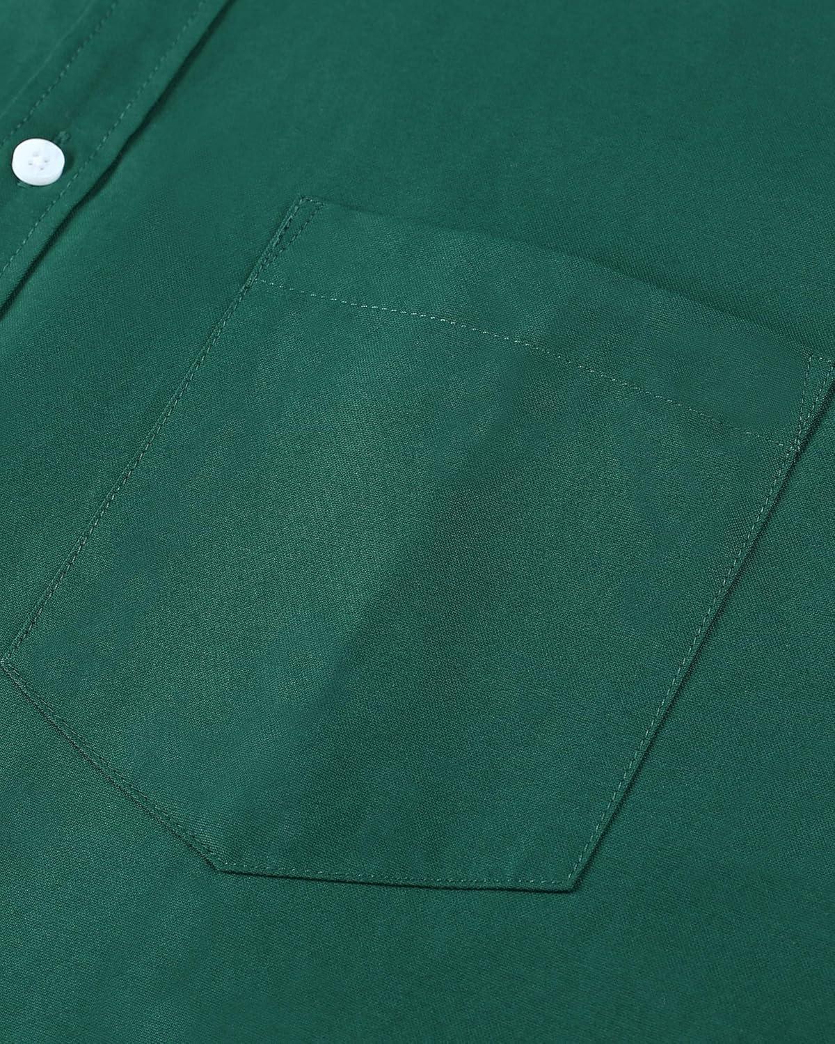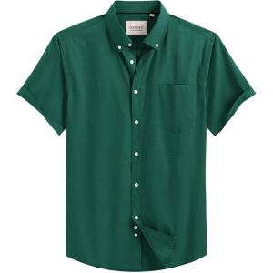 Alimens & Gentle Men’s Short Sleeve Oxford Shirt Regular Fit Button Down Collar Shirts with Pocket(Dark Green)