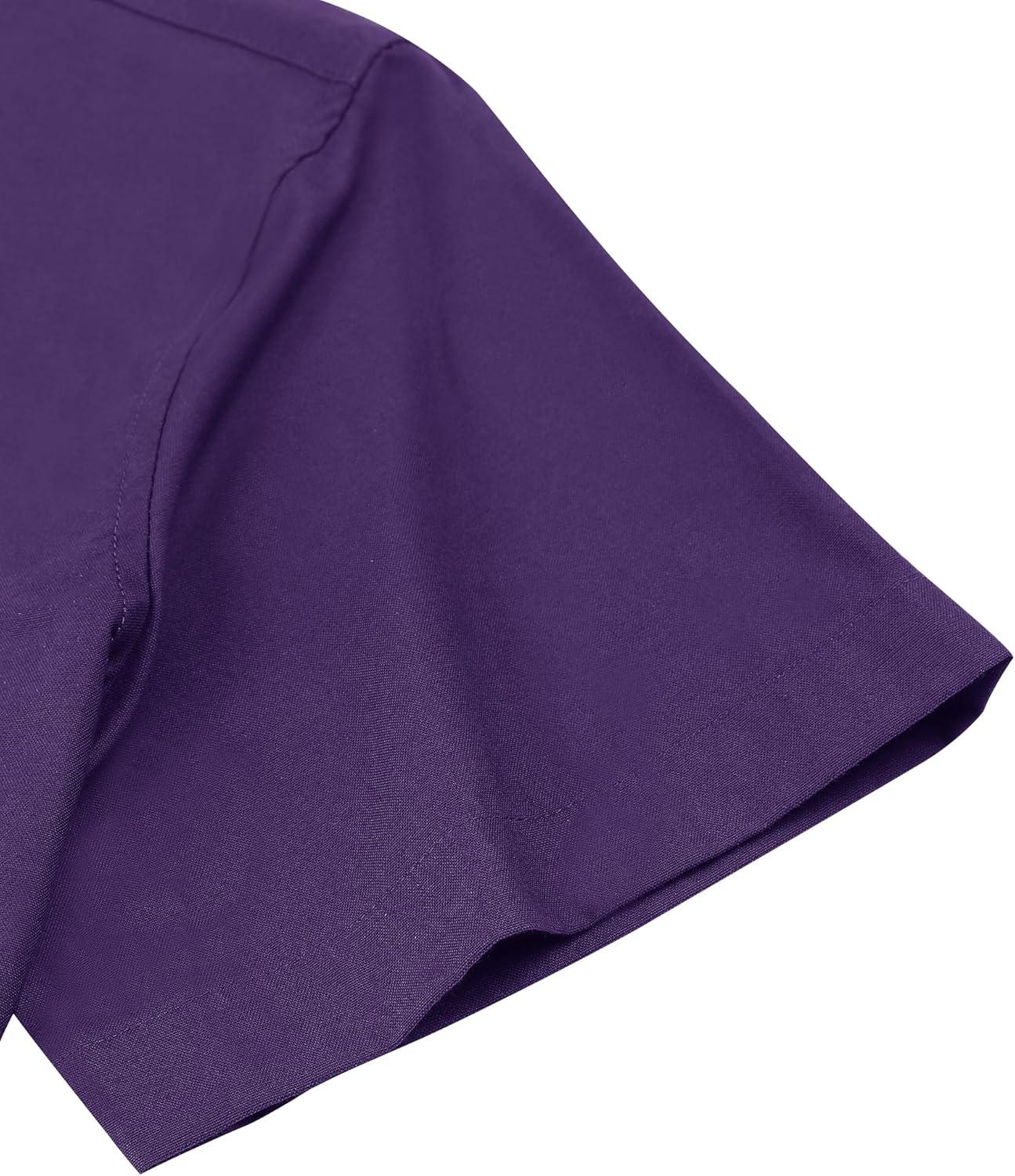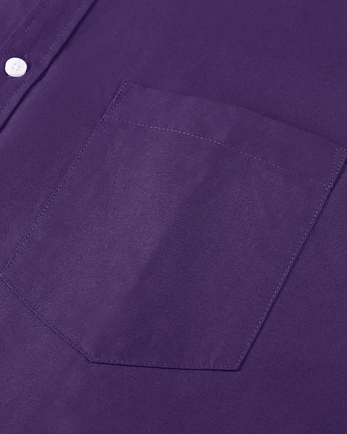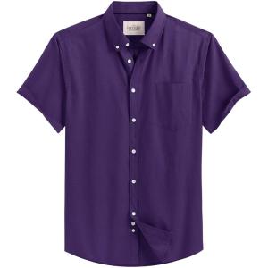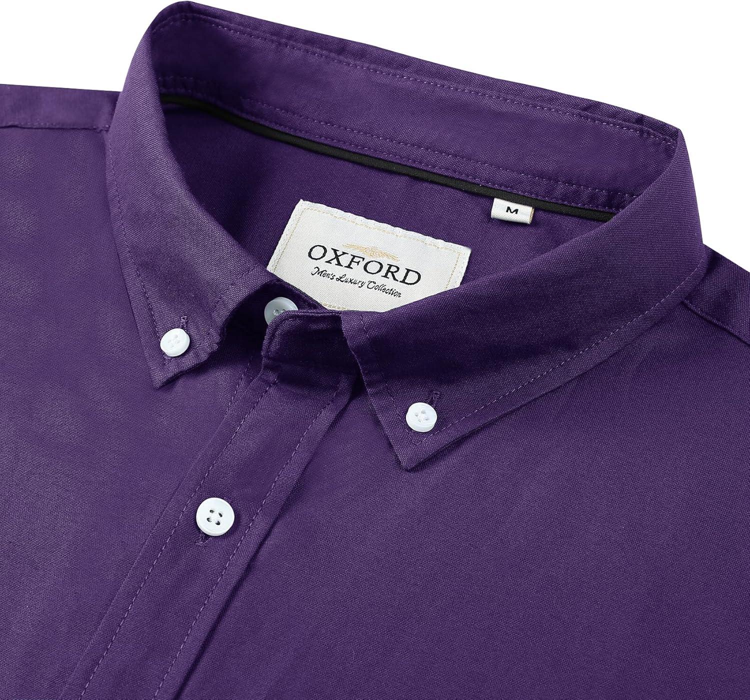 Alimens & Gentle Men’s Short Sleeve Oxford Shirt Regular Fit Button Down Collar Shirts with Pocket(Dark Purple)