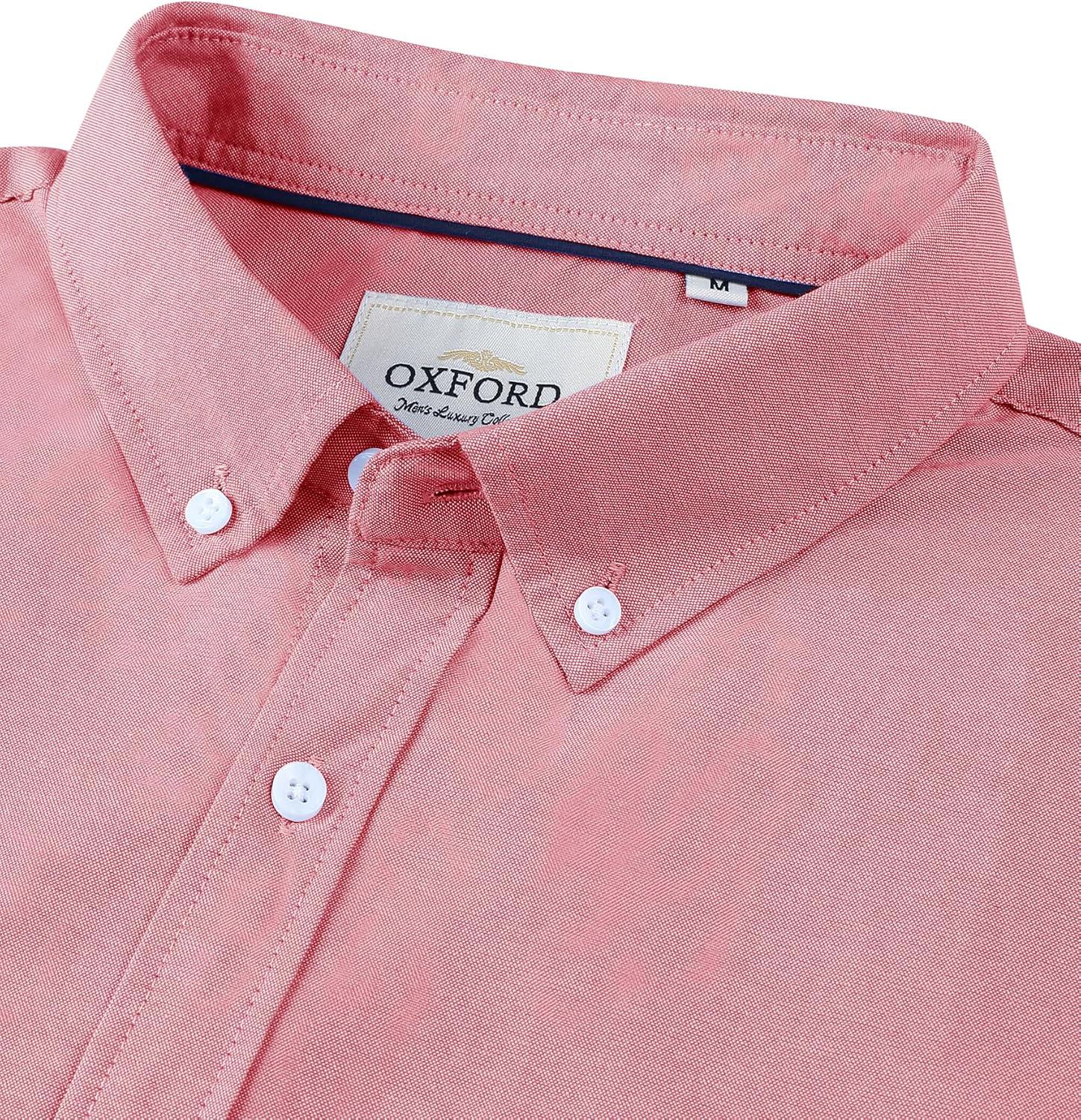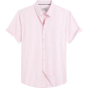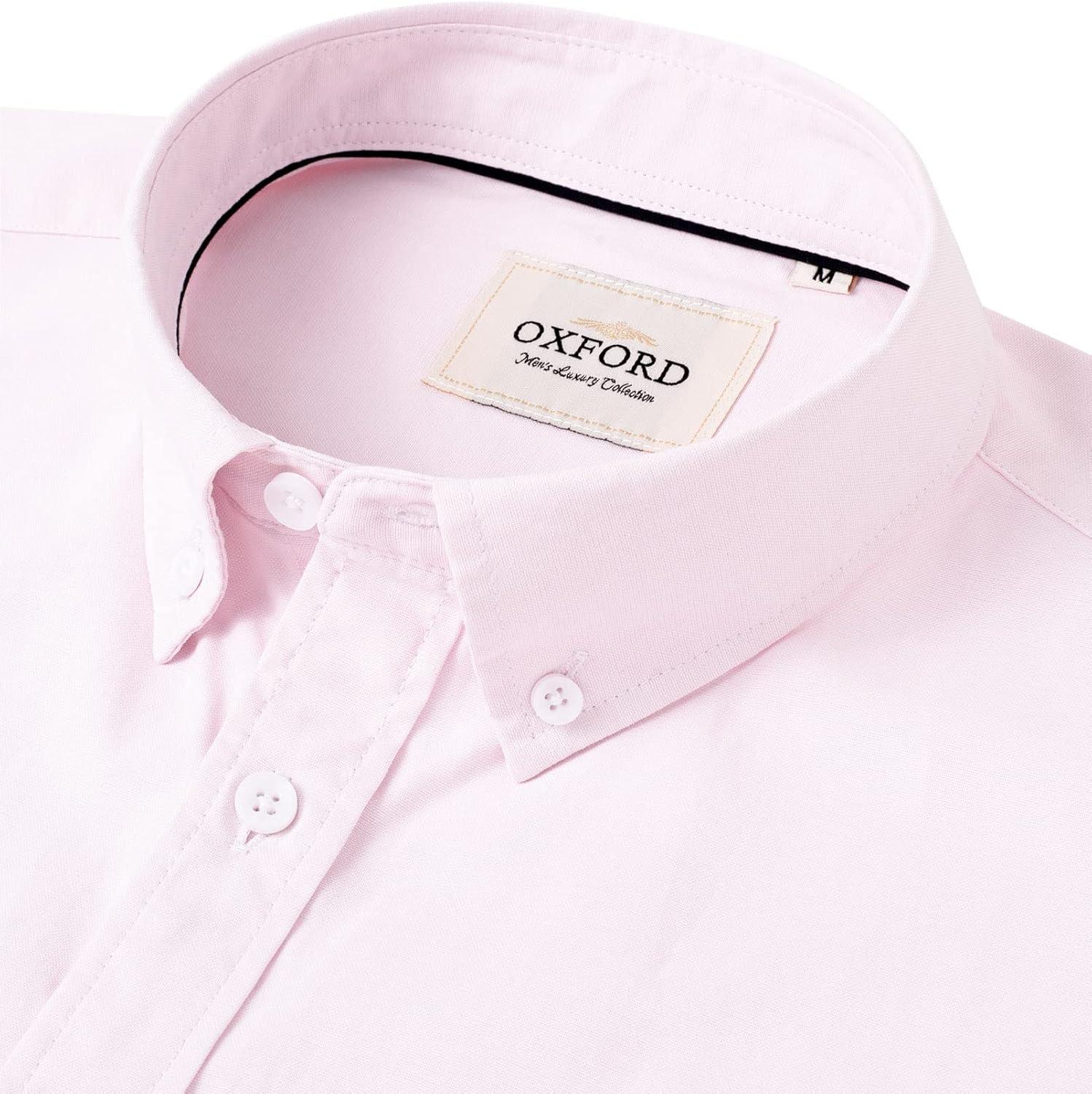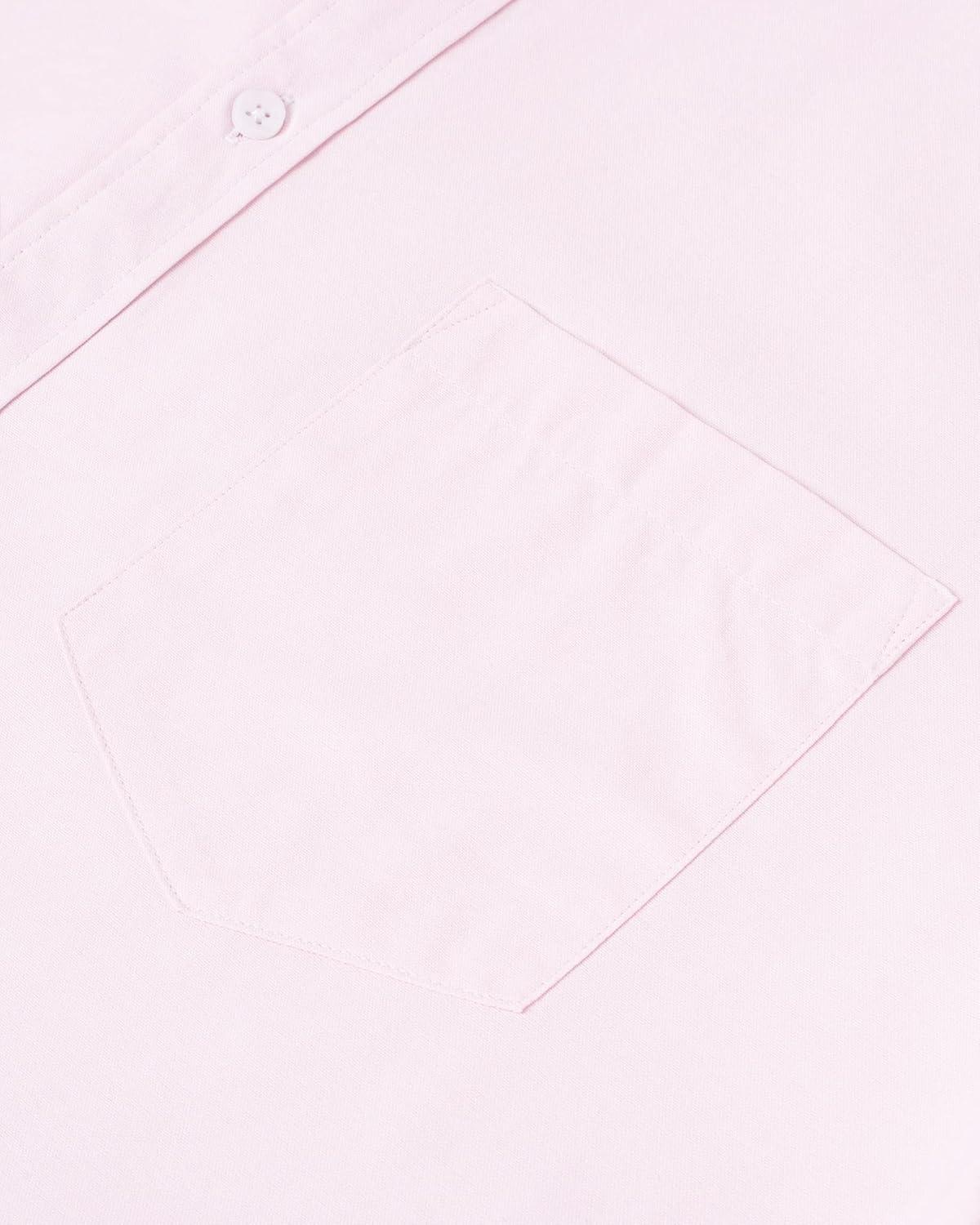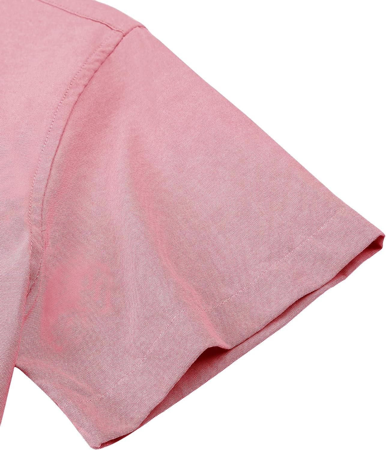 Alimens & Gentle Men’s Short Sleeve Oxford Shirt Regular Fit Button Down Collar Shirts with Pocket(Light Pink)