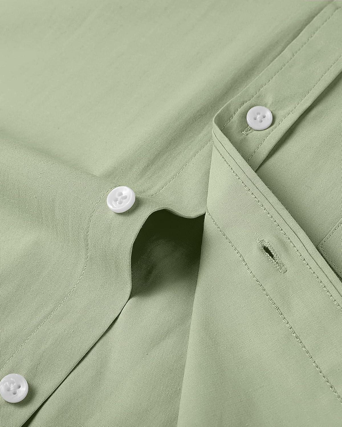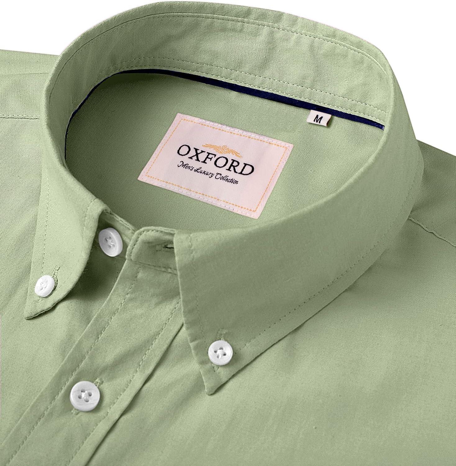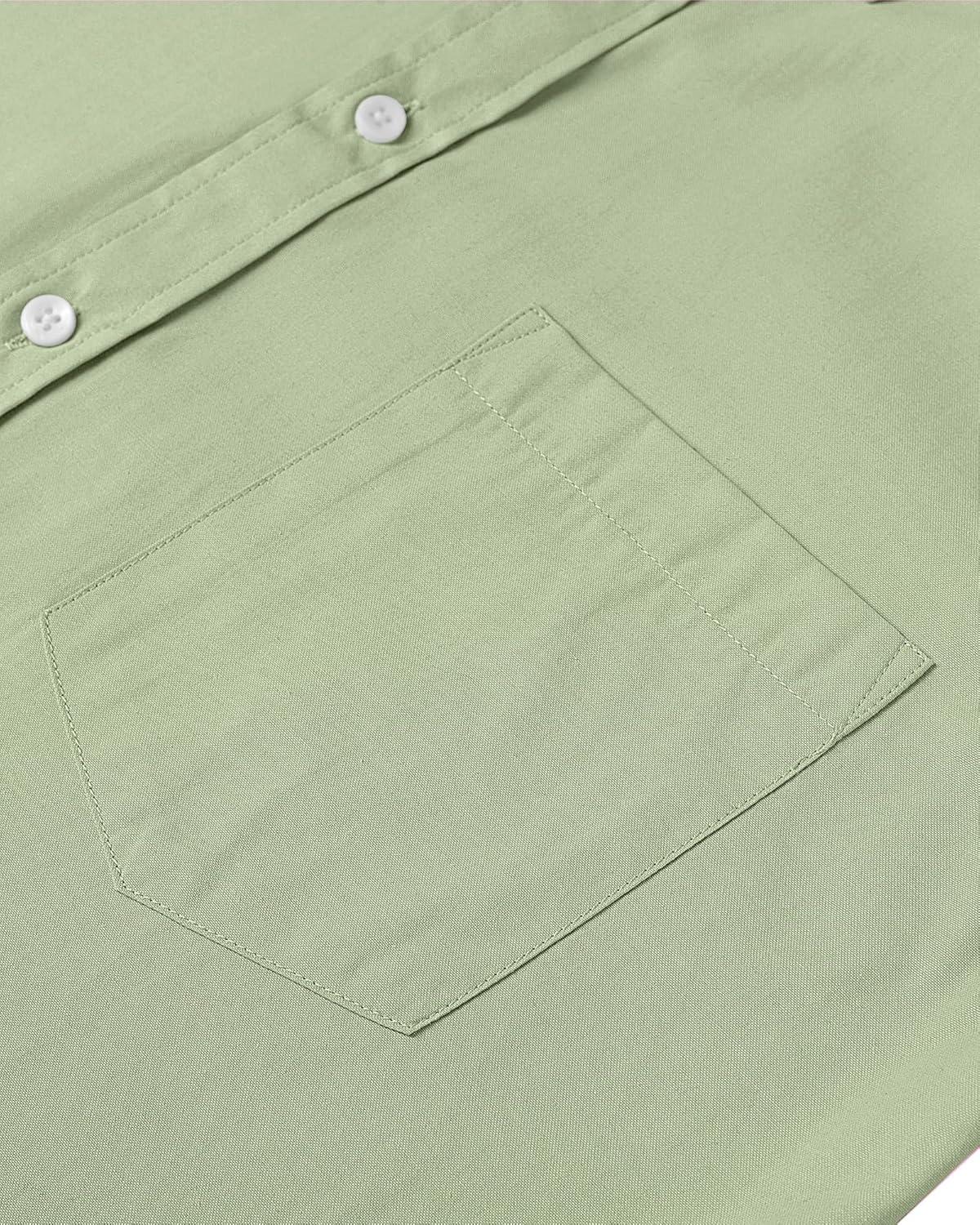 Alimens & Gentle Men’s Short Sleeve Oxford Shirt Regular Fit Button Down Collar Shirts with Pocket(Green)