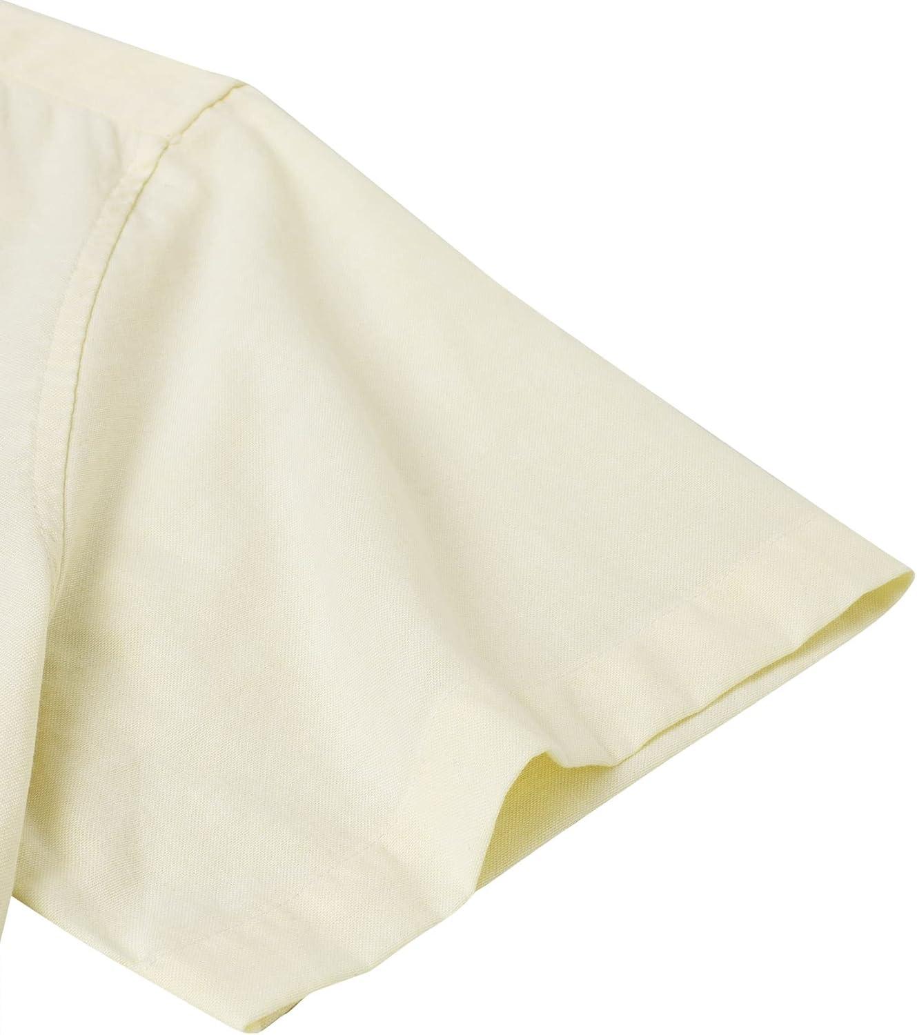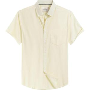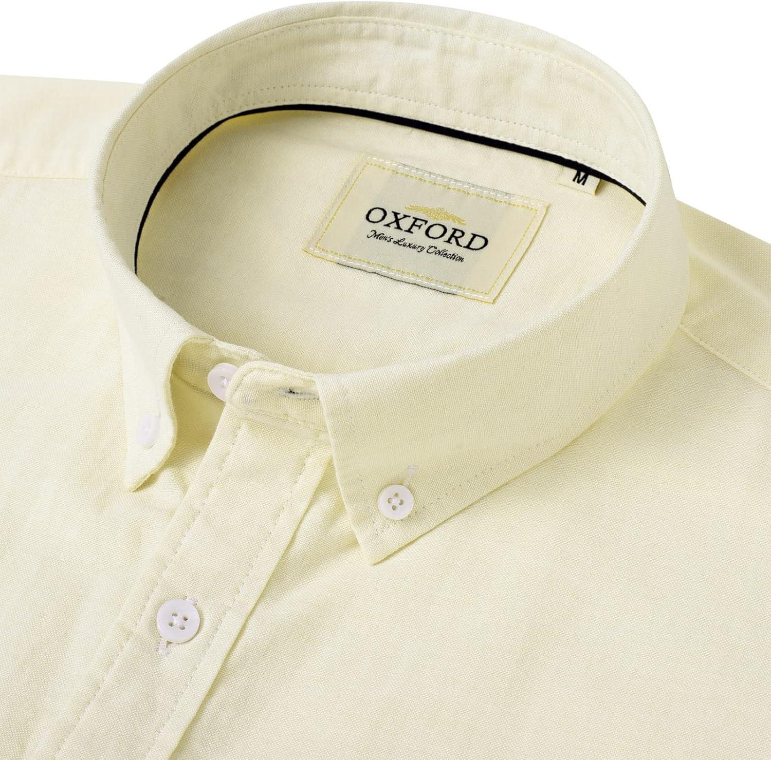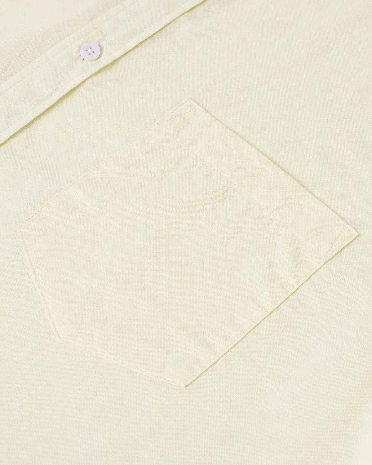 Alimens & Gentle Men’s Short Sleeve Oxford Shirt Regular Fit Button Down Collar Shirts with Pocket(Light Yellow)
