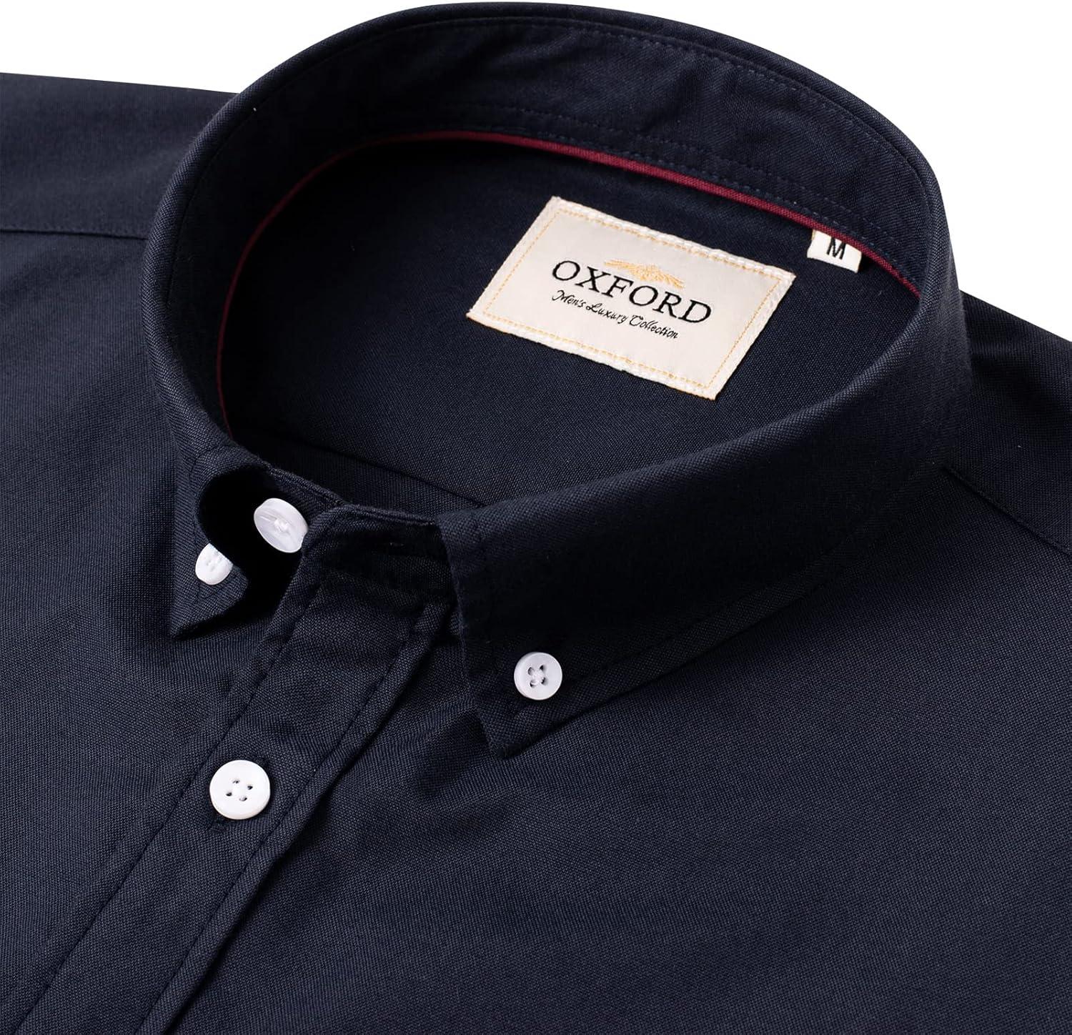 Alimens & Gentle Men’s Short Sleeve Oxford Shirt Regular Fit Button Down Collar Shirts with Pocket(Navy Blue)