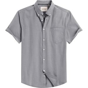 Alimens & Gentle Men’s Short Sleeve Oxford Shirt Regular Fit Button Down Collar Shirts with Pocket(Anthracite)