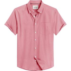 Alimens & Gentle Men’s Short Sleeve Oxford Shirt Regular Fit Button Down Collar Shirts with Pocket(Dull Pink)