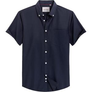 Alimens & Gentle Men’s Short Sleeve Oxford Shirt Regular Fit Button Down Collar Shirts with Pocket(Navy)