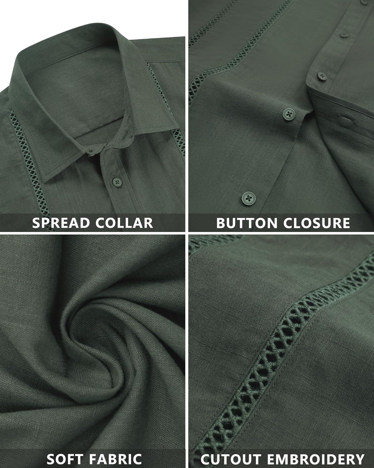 Alimens & Gentle Men’s Cuban Guayabera Shirts Cotton Linen Short Sleeve Button Down Shirts Casual Summer Beach Camp Shirt(Army Green)