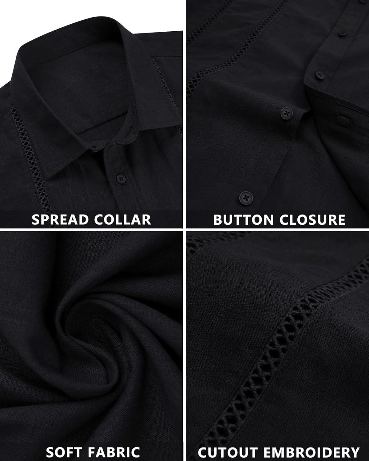 Alimens & Gentle Men’s Cuban Guayabera Shirts Cotton Linen Short Sleeve Button Down Shirts Casual Summer Beach Camp Shirt(Black)