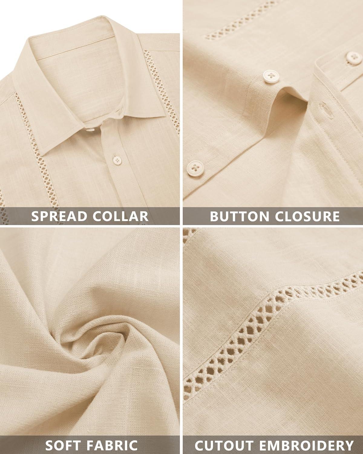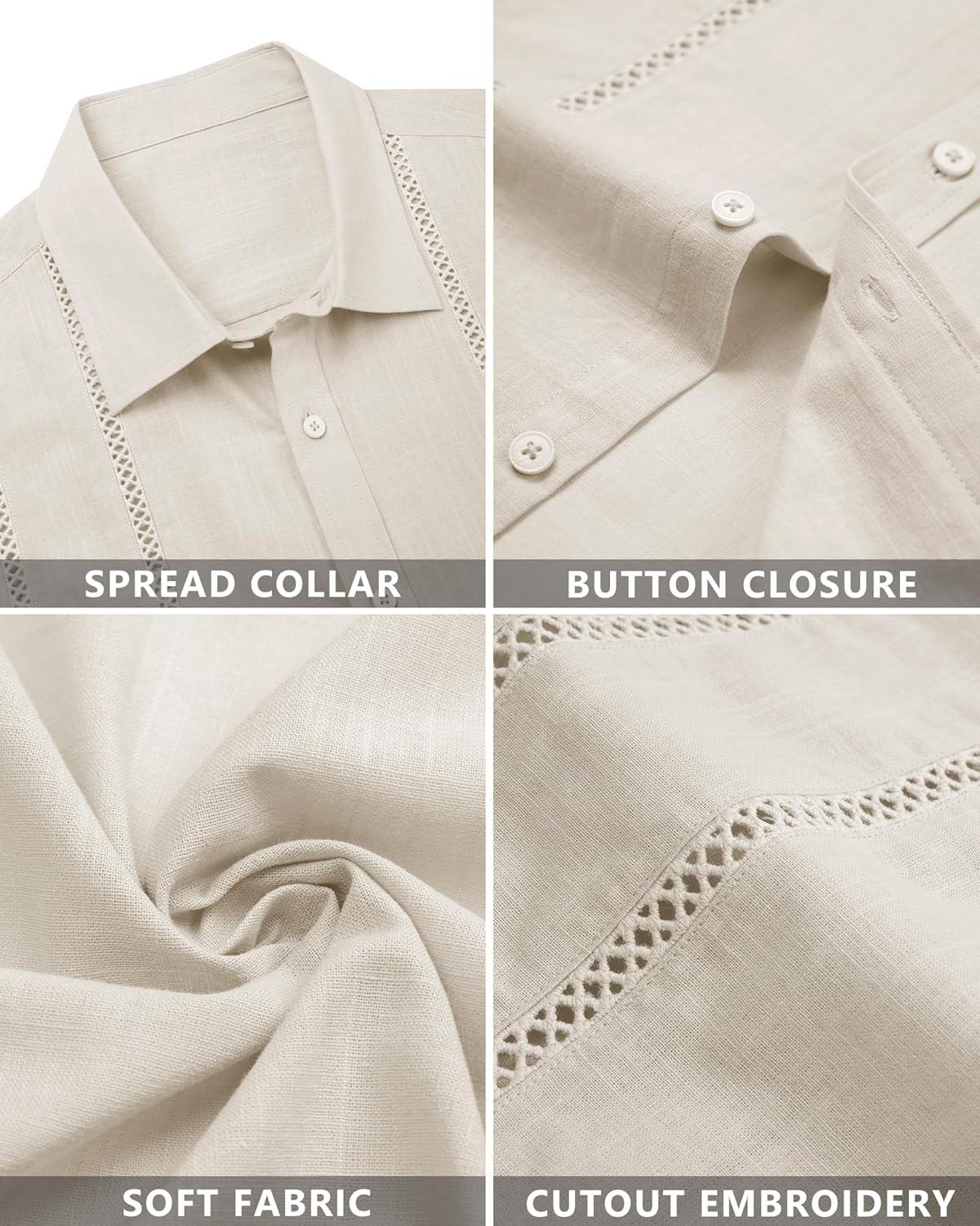 Alimens & Gentle Men’s Cuban Guayabera Shirts Cotton Linen Short Sleeve Button Down Shirts Casual Summer Beach Camp Shirt(Cloud Cream)