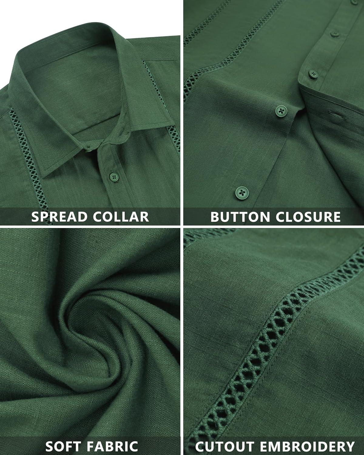 Alimens & Gentle Men’s Cuban Guayabera Shirts Cotton Linen Short Sleeve Button Down Shirts Casual Summer Beach Camp Shirt(Dark Green)