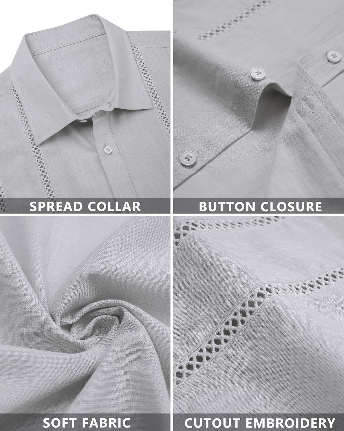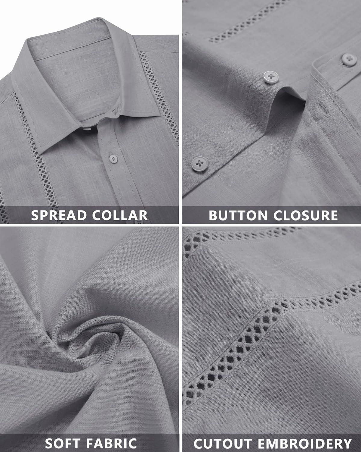Alimens & Gentle Men’s Cuban Guayabera Shirts Cotton Linen Short Sleeve Button Down Shirts Casual Summer Beach Camp Shirt(Grey)