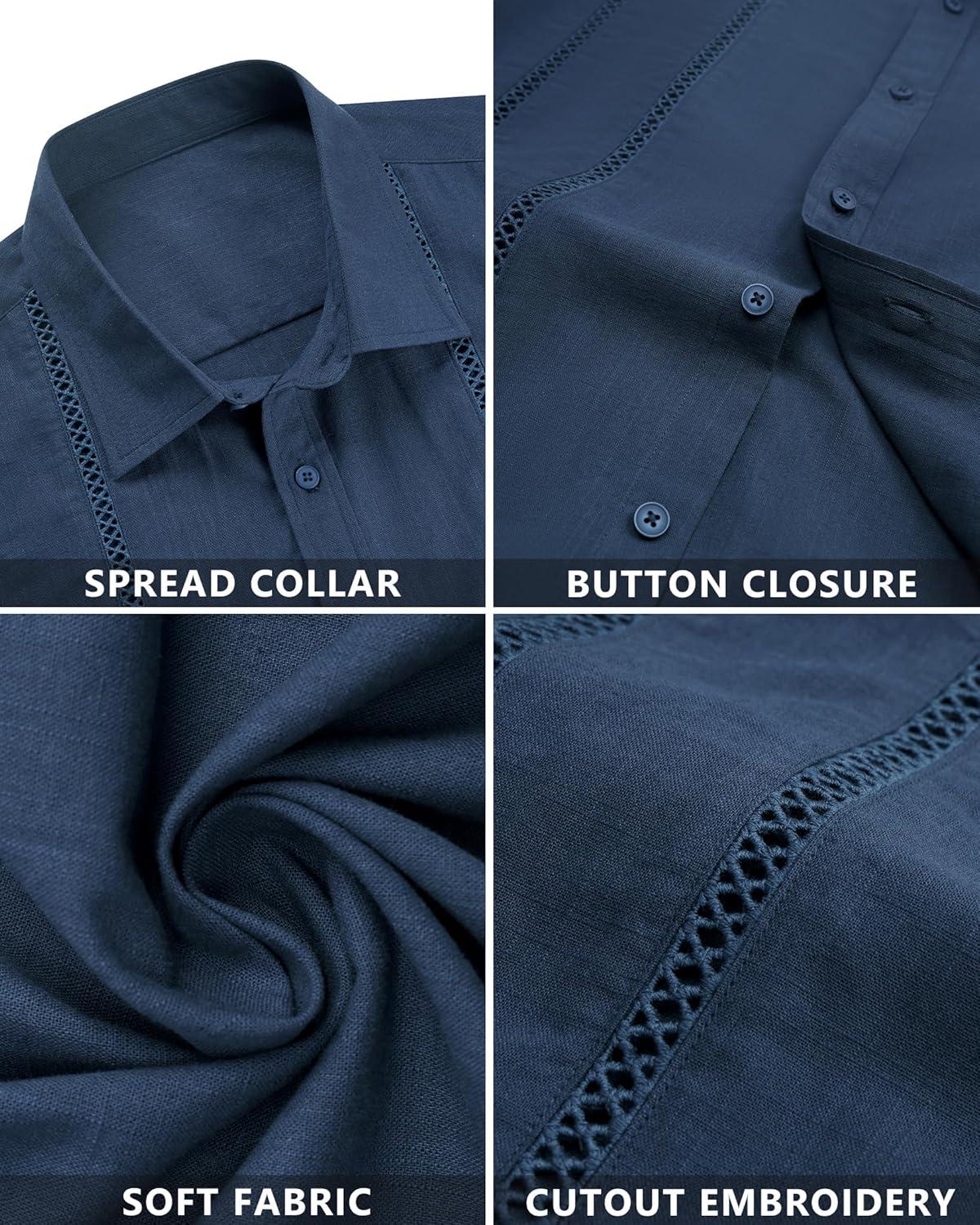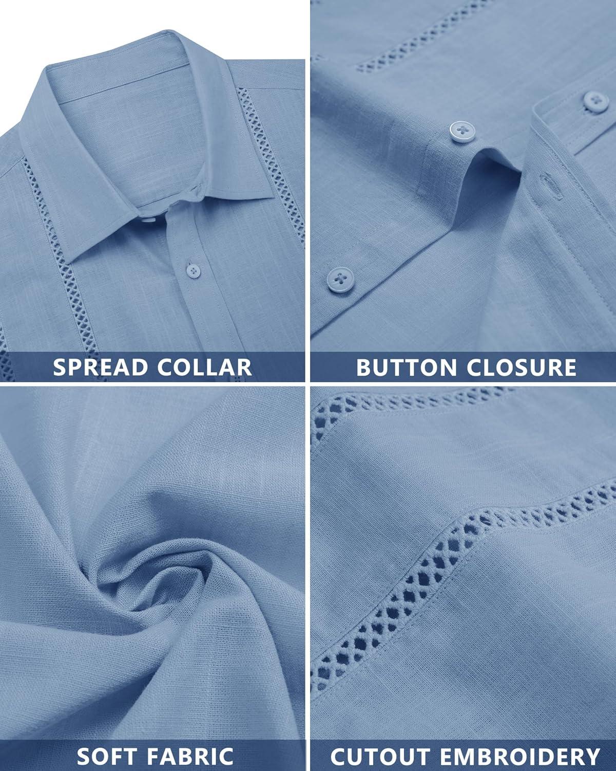 Alimens & Gentle Men’s Cuban Guayabera Shirts Cotton Linen Short Sleeve Button Down Shirts Casual Summer Beach Camp Shirt(Fog Blue)