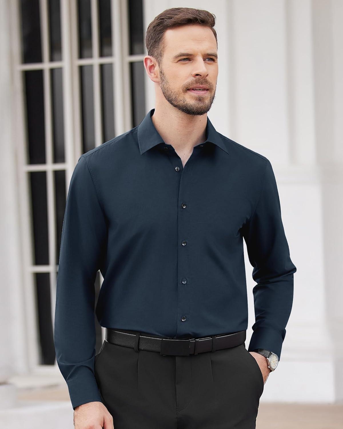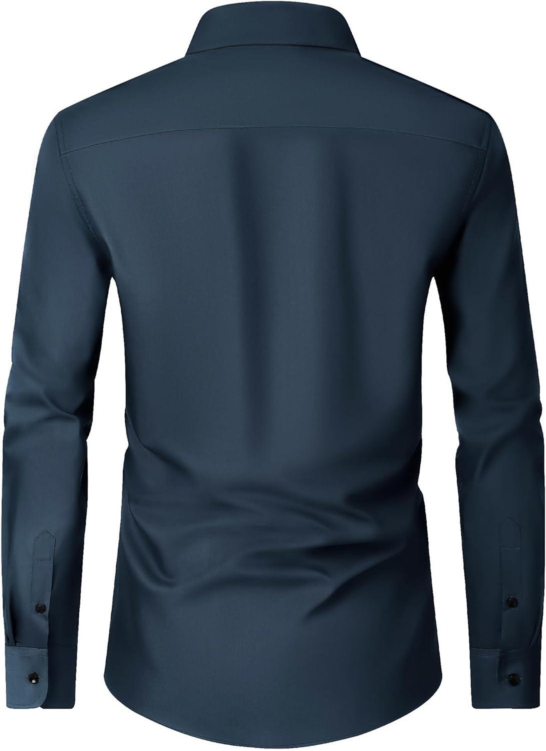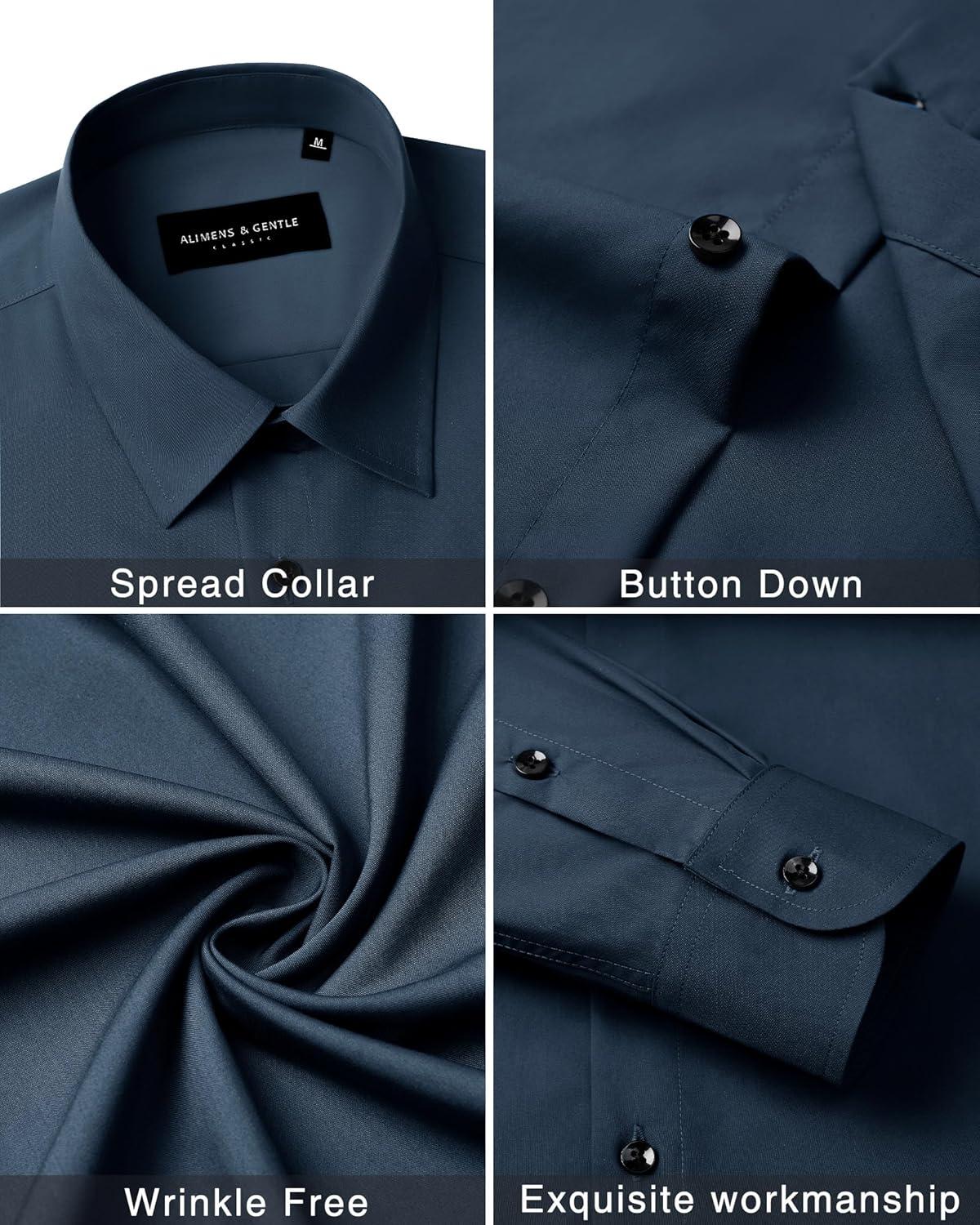 Alimens & Gentle Men’s Dress Shirts Long Sleeve Wrinkle Free Stretch Business Casual Wedding Button Down Shirt(Navy Blue)