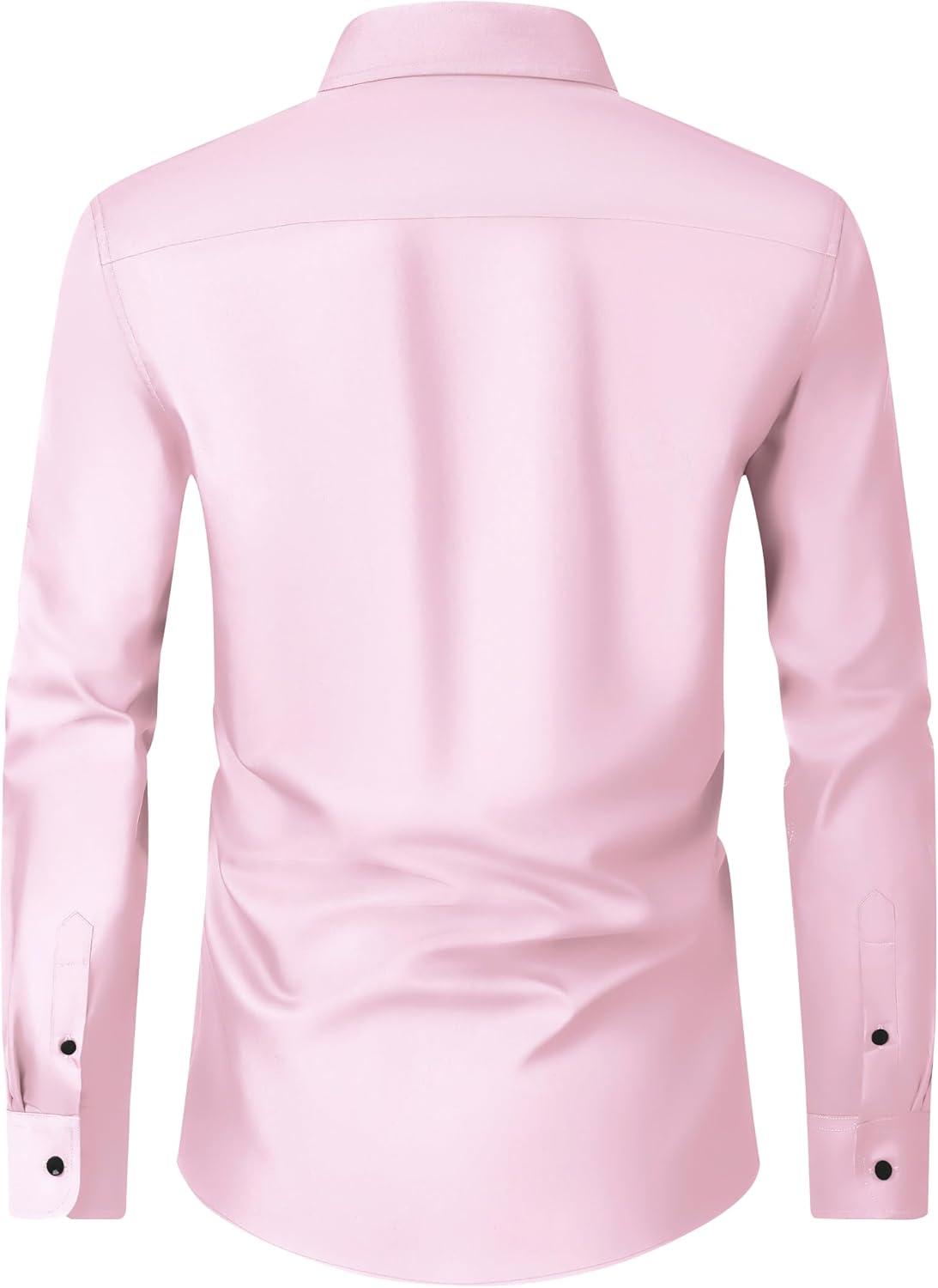 Alimens & Gentle Men’s Dress Shirts Long Sleeve Wrinkle Free Stretch Business Casual Wedding Button Down Shirt(Pink)