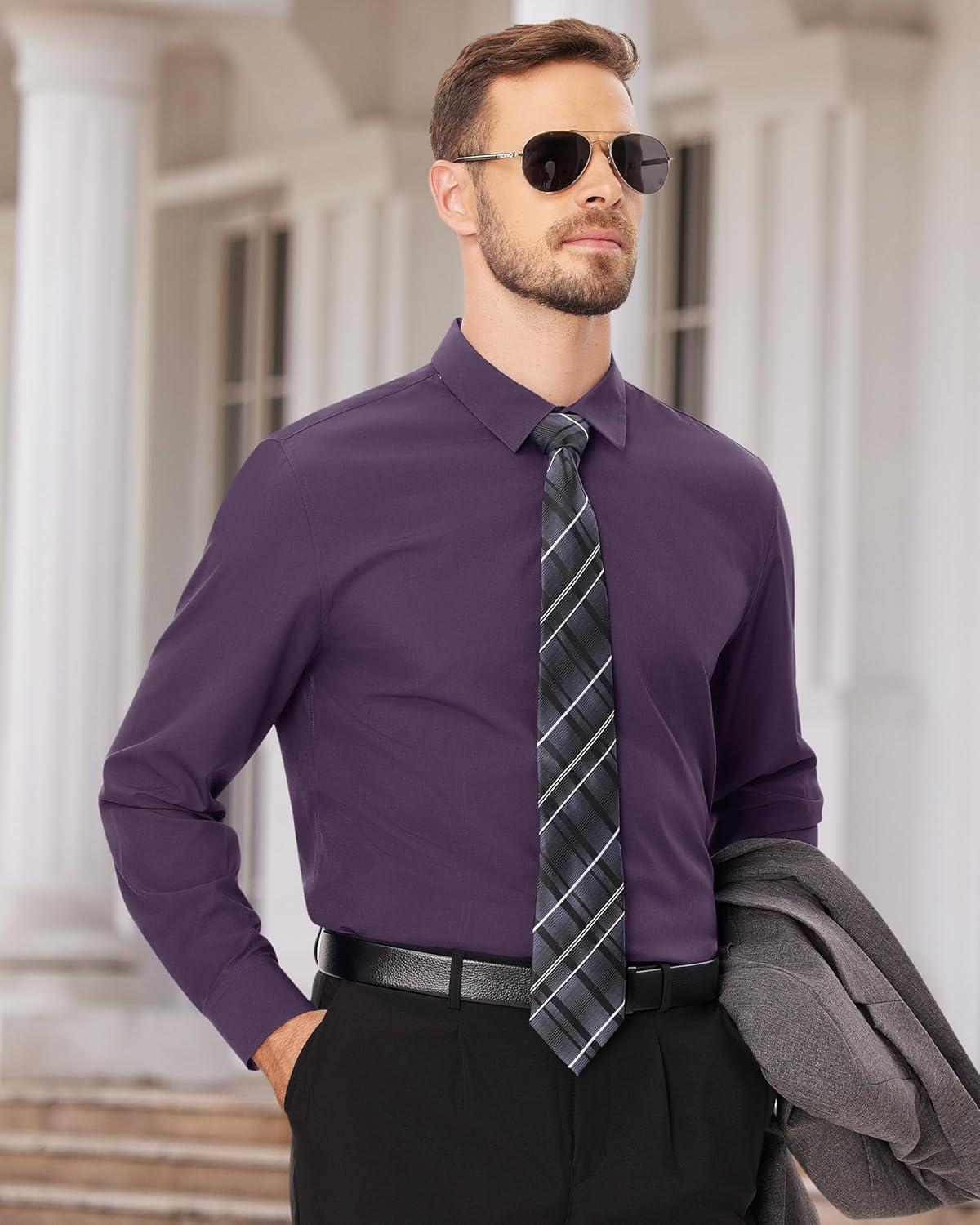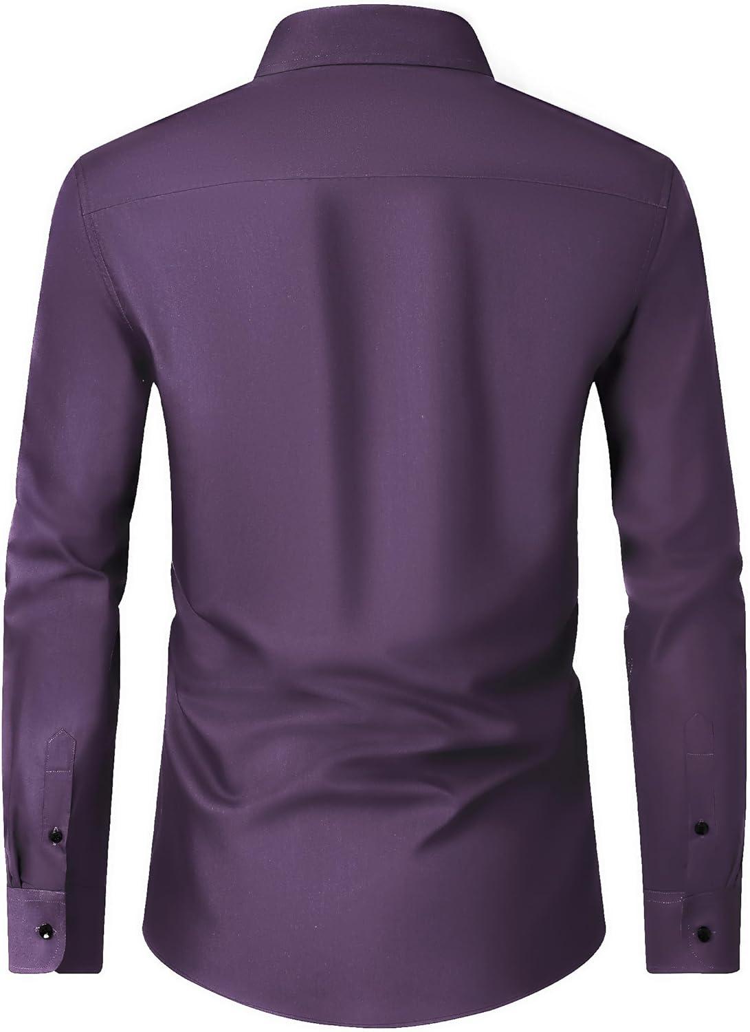 Alimens & Gentle Men’s Dress Shirts Long Sleeve Wrinkle Free Stretch Business Casual Wedding Button Down Shirt(Purple)