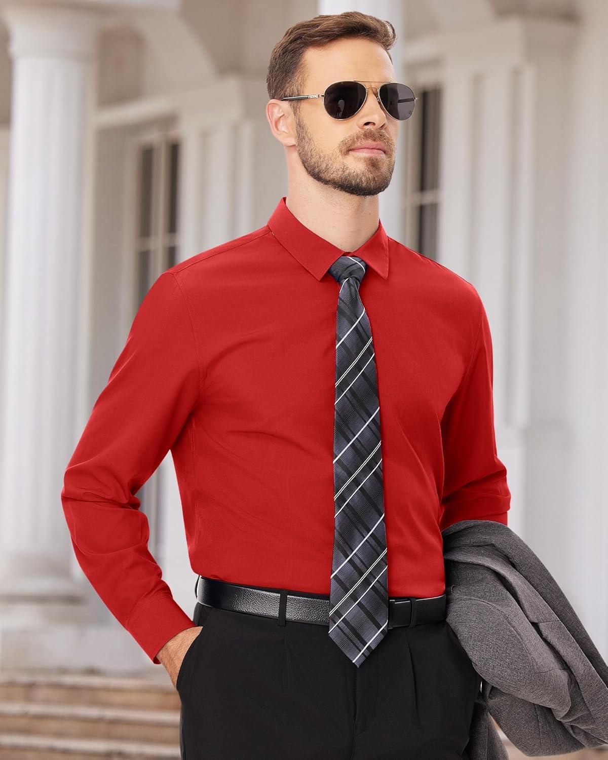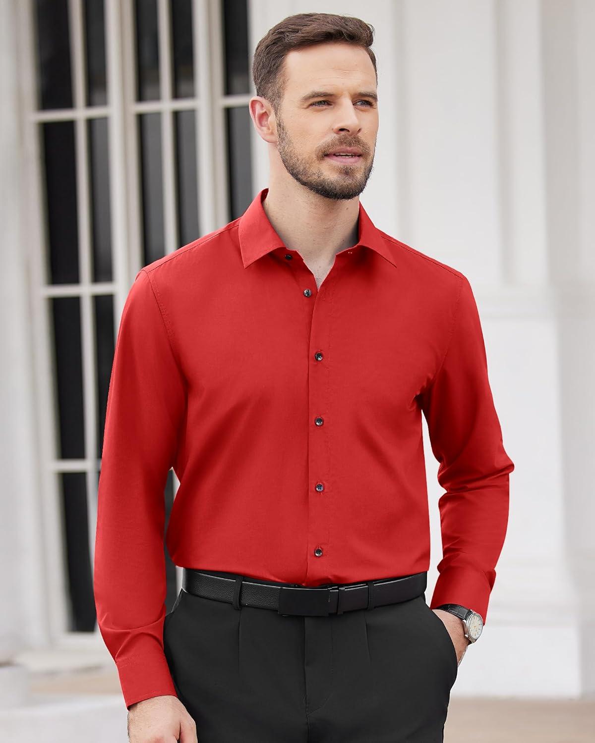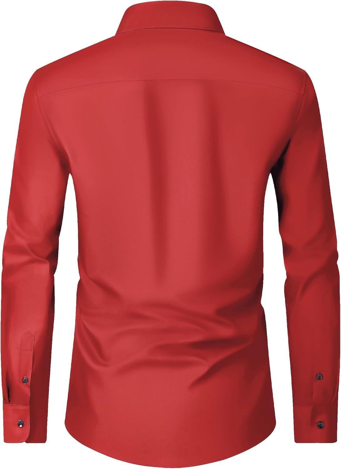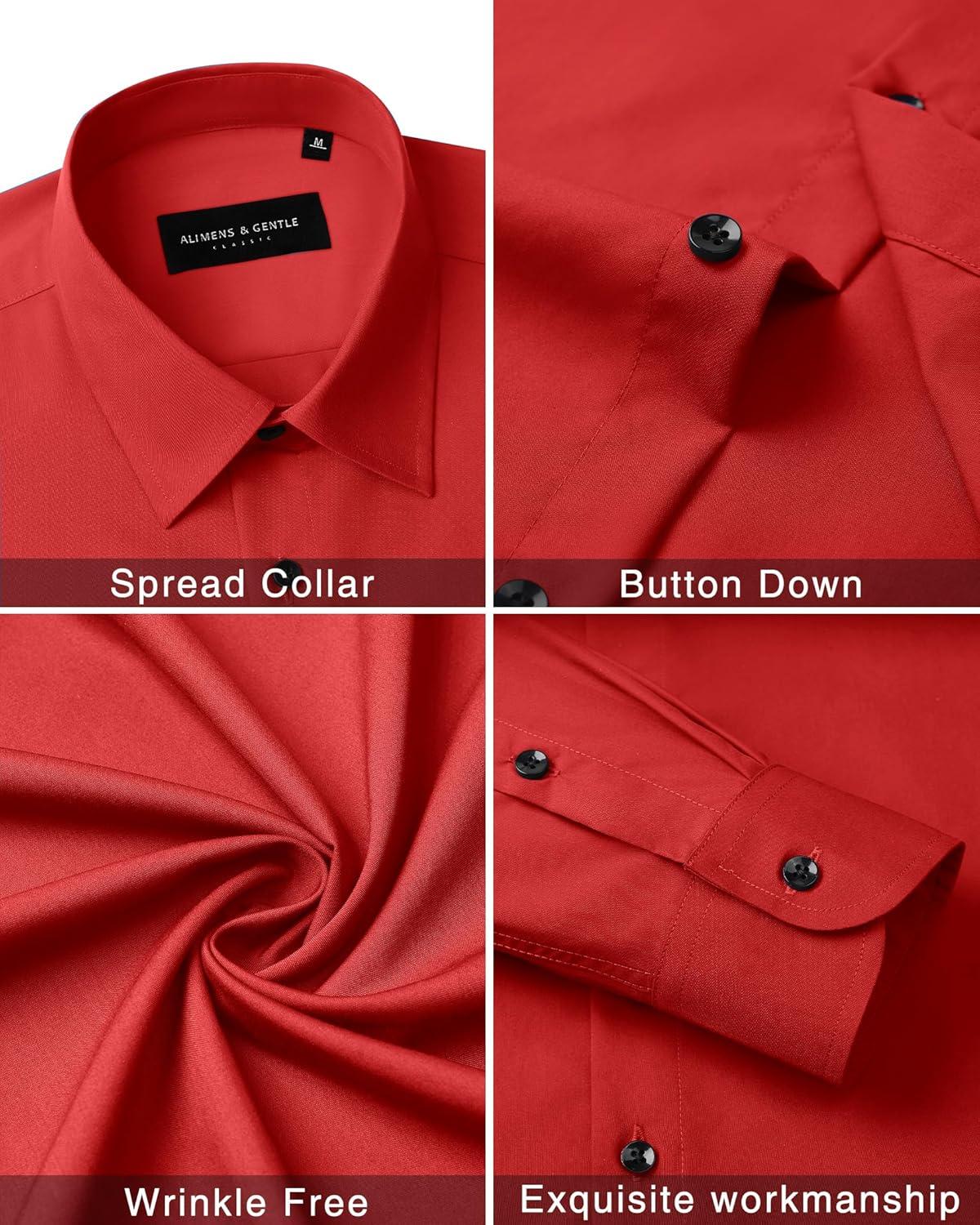 Alimens & Gentle Men’s Dress Shirts Long Sleeve Wrinkle Free Stretch Business Casual Wedding Button Down Shirt(Red)