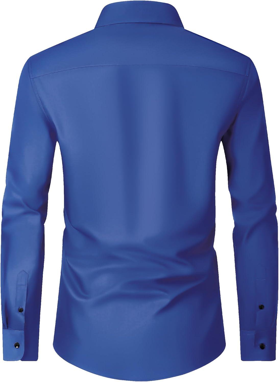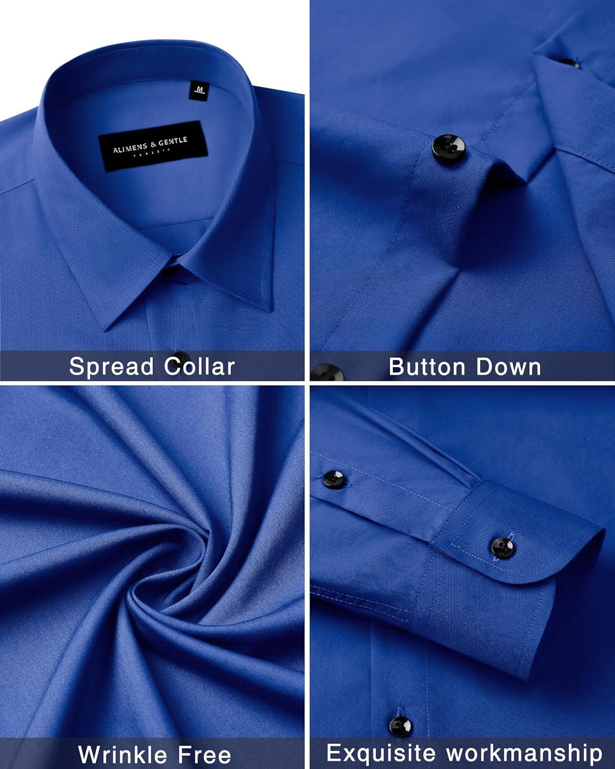 Alimens & Gentle Men’s Dress Shirts Long Sleeve Wrinkle Free Stretch Business Casual Wedding Button Down Shirt(Royal Blue)