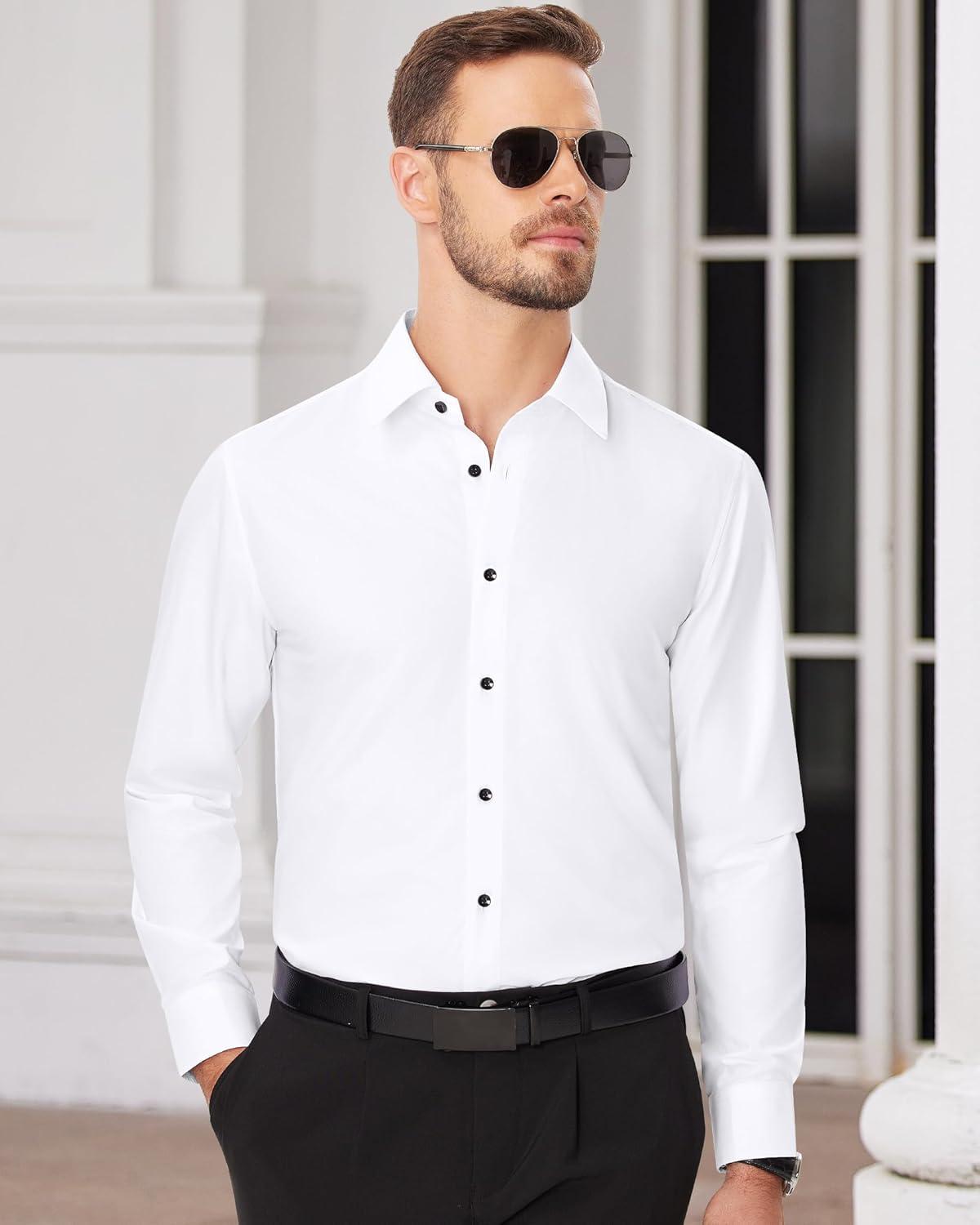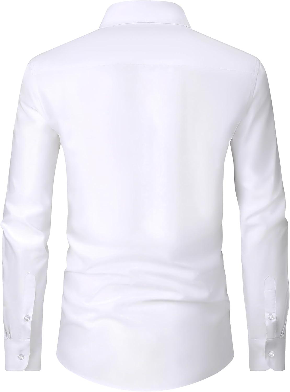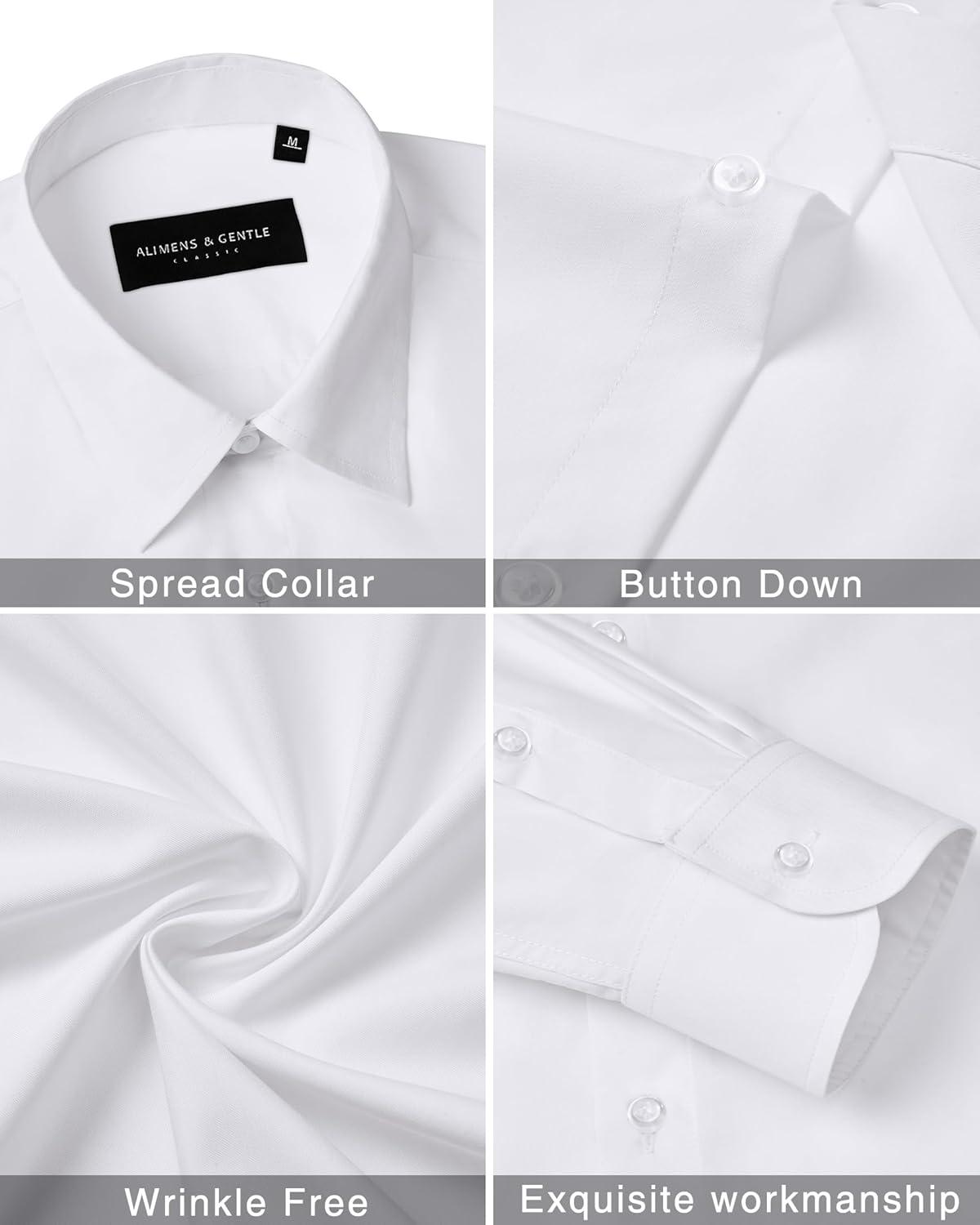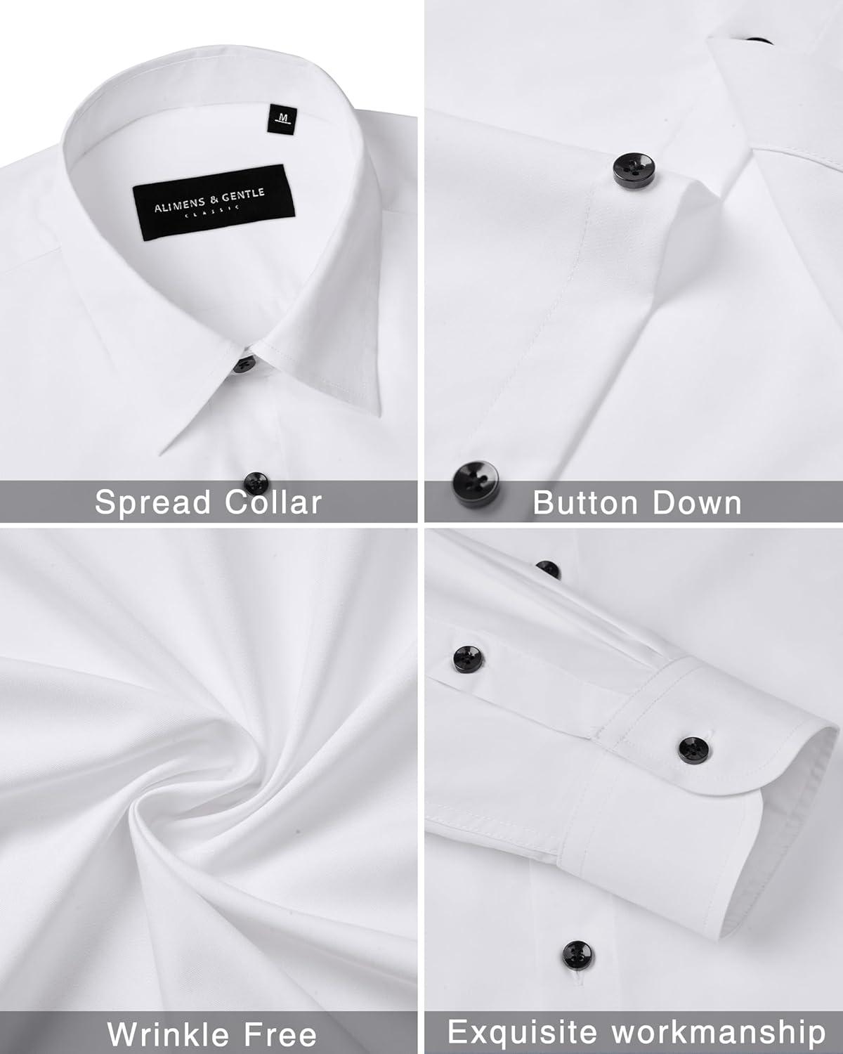 Alimens & Gentle Men’s Dress Shirts Long Sleeve Wrinkle Free Stretch Business Casual Wedding Button Down Shirt(White)